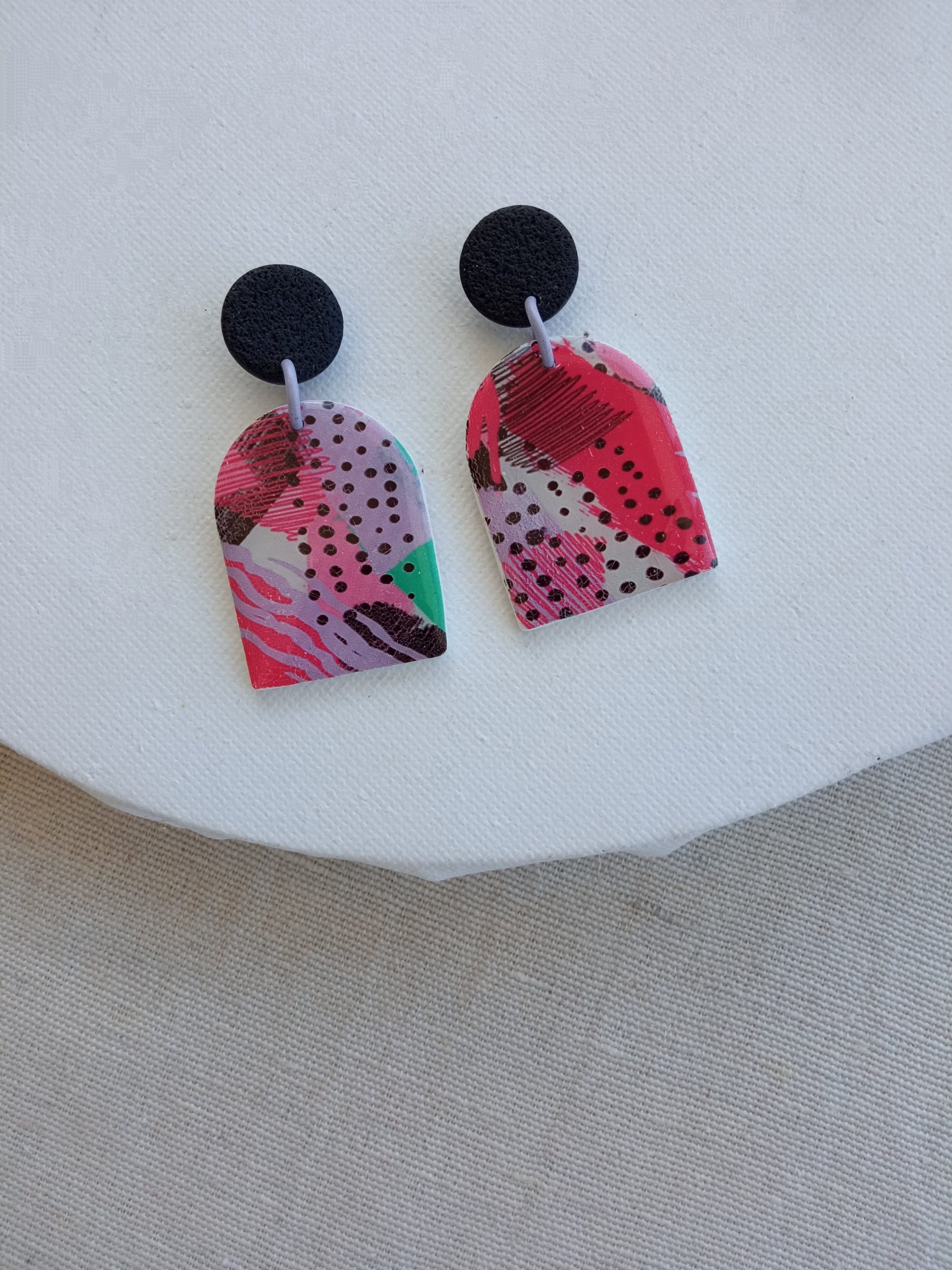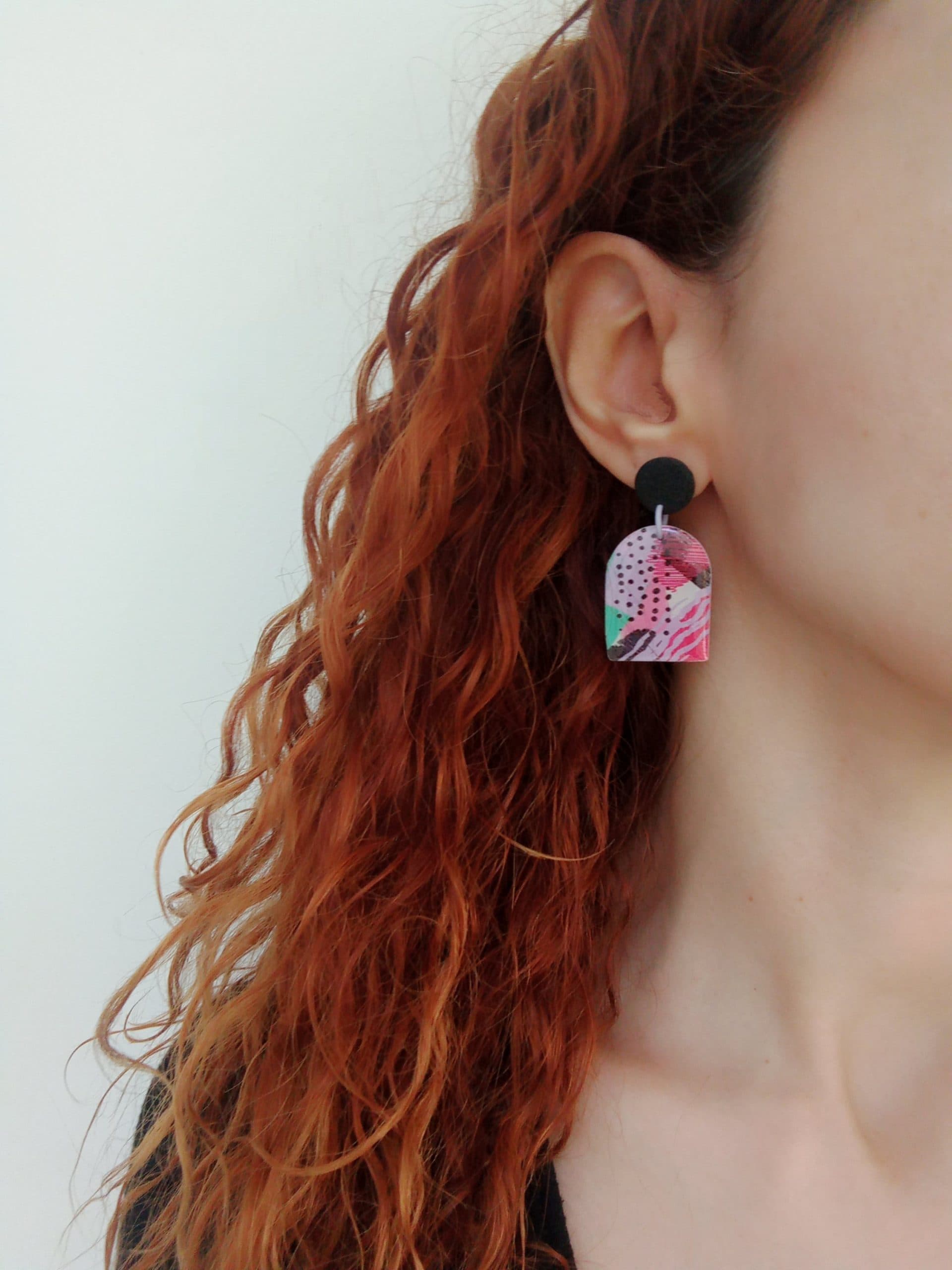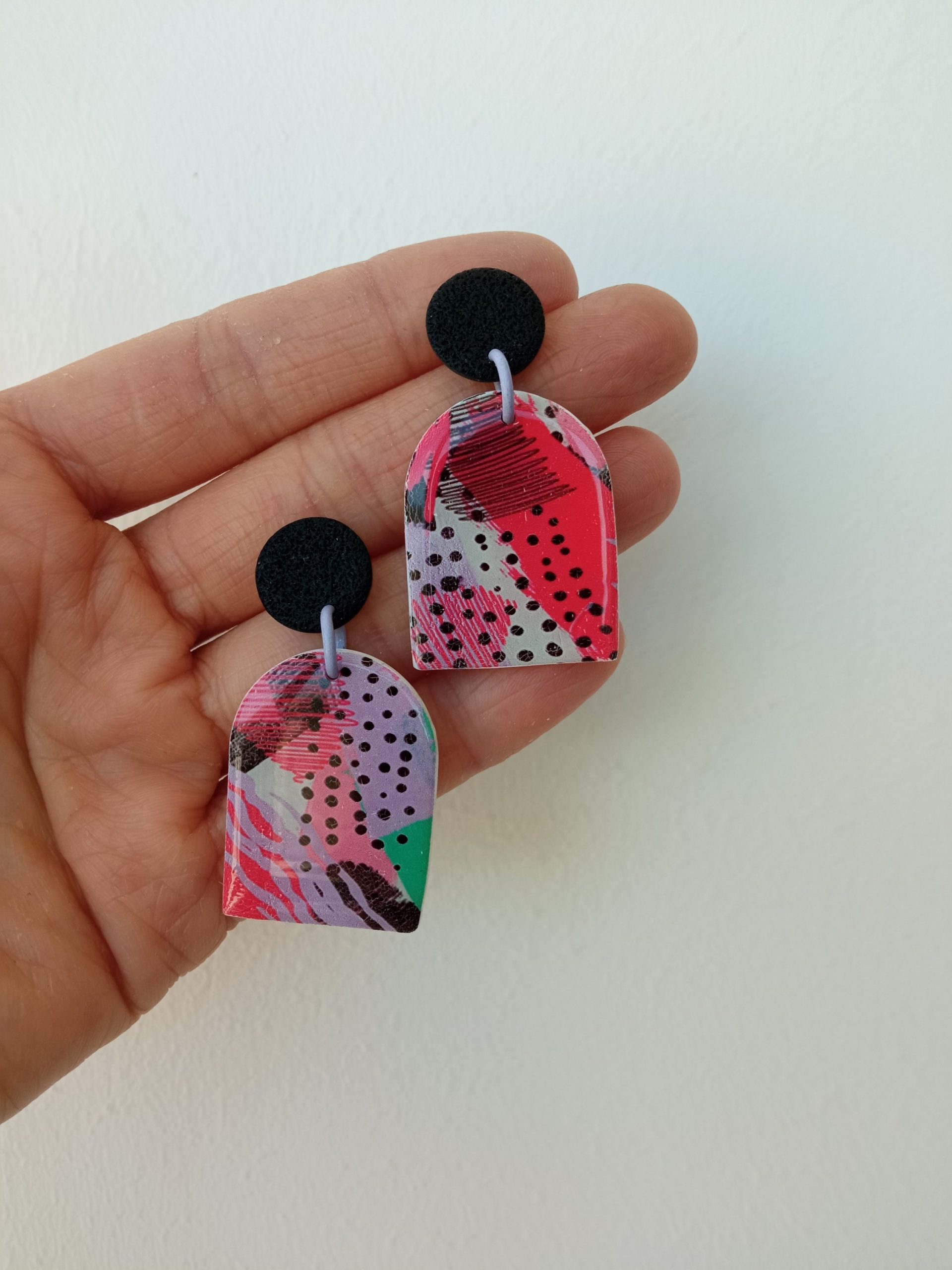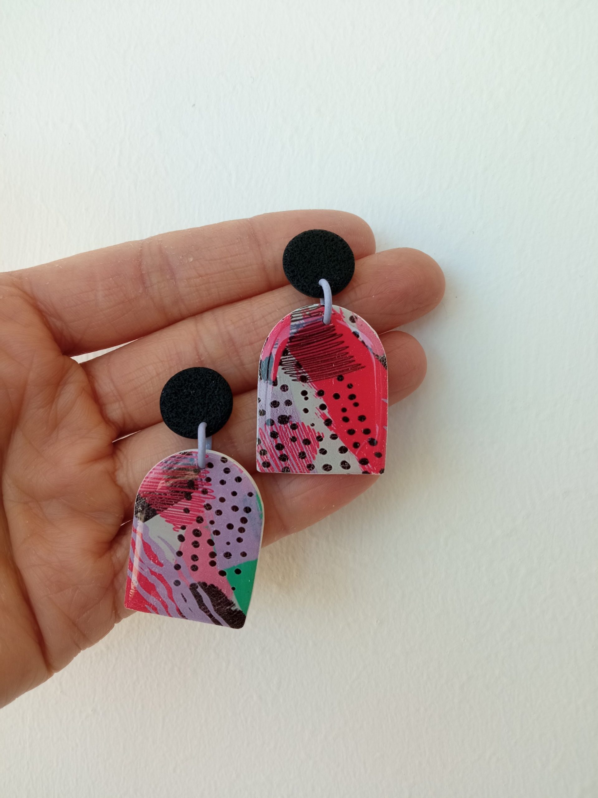 Materials: polymer clay, UV resin, stainless steel earring posts.