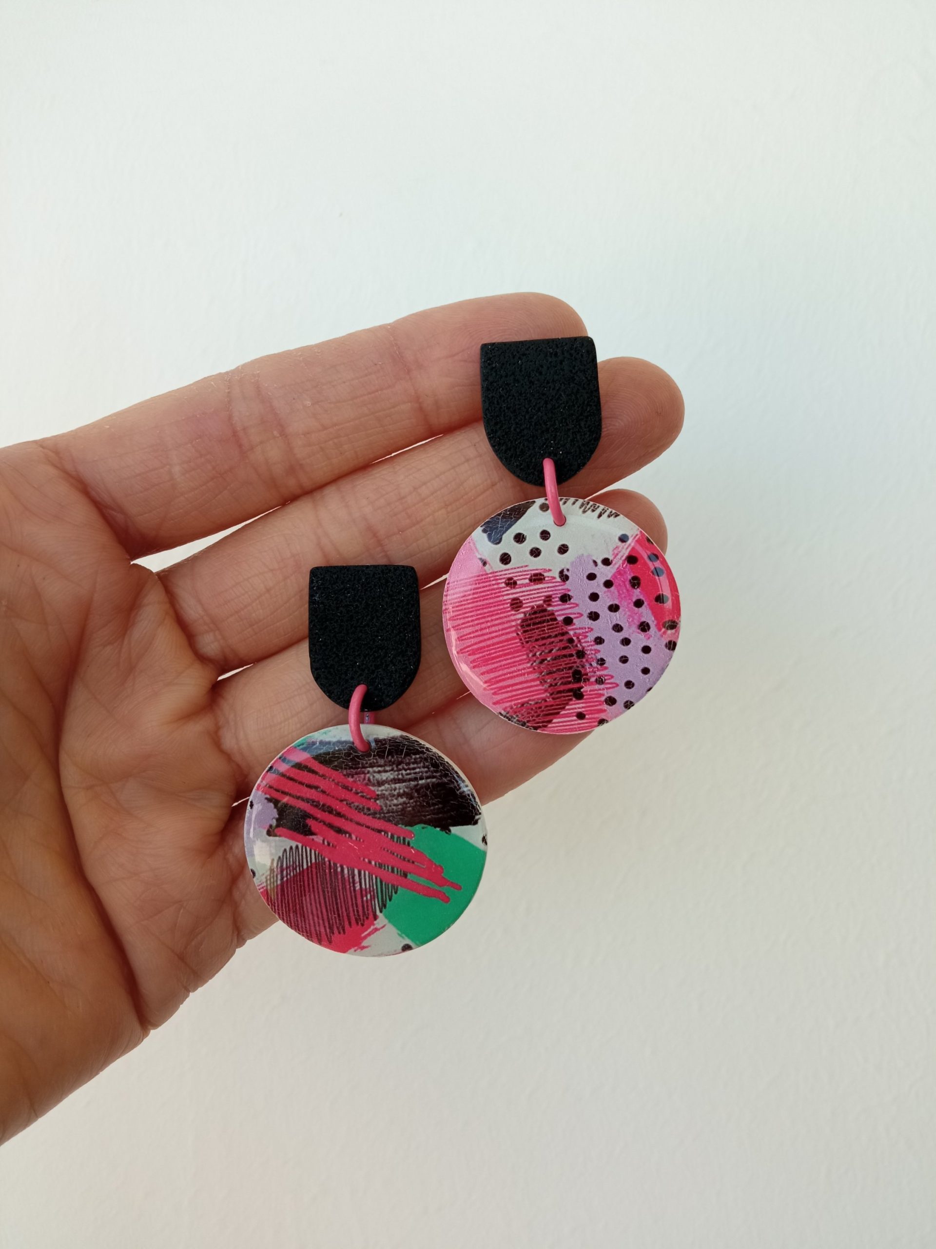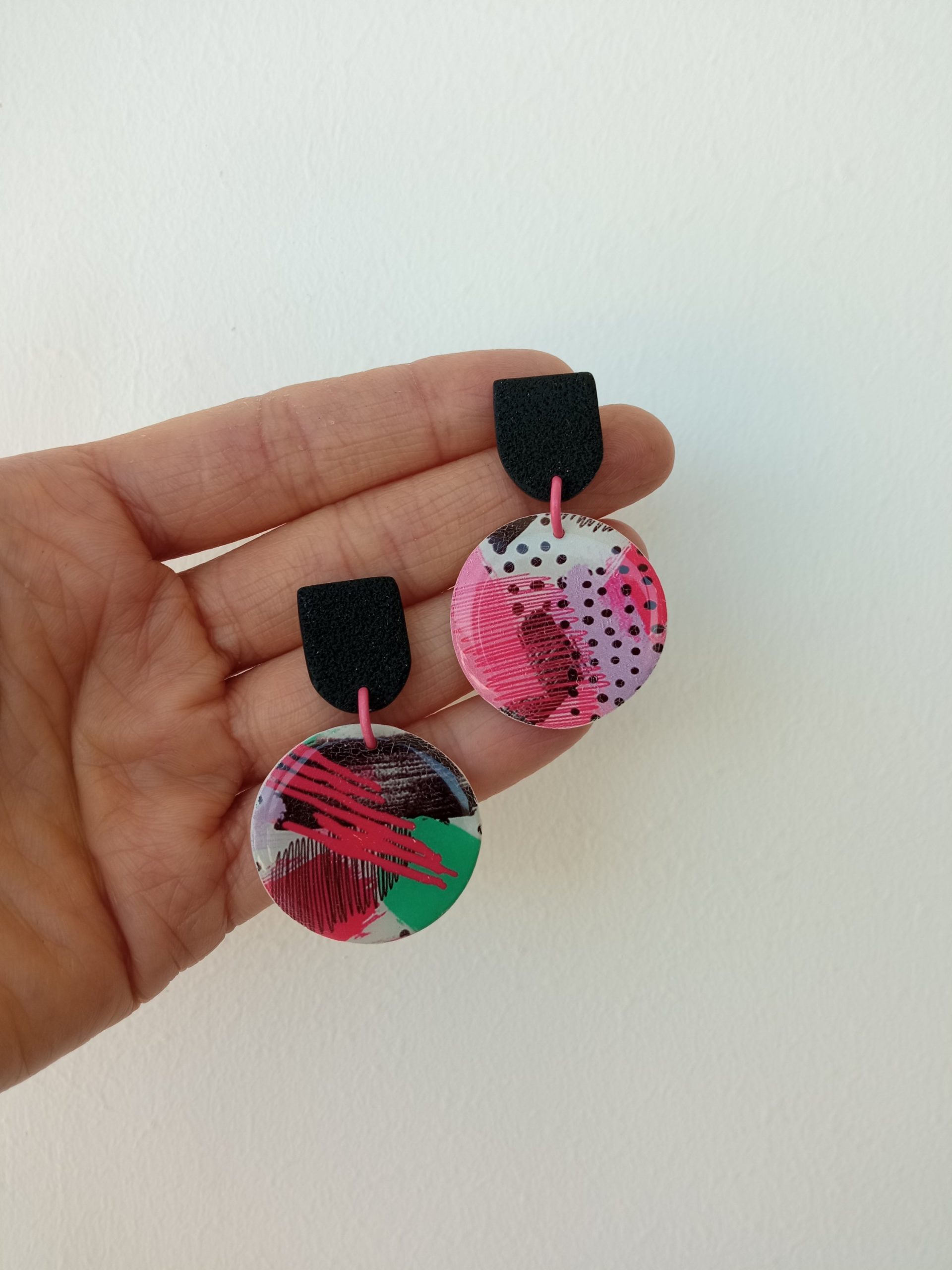 Materials: polymer clay, UV resin, stainless steel earring posts.