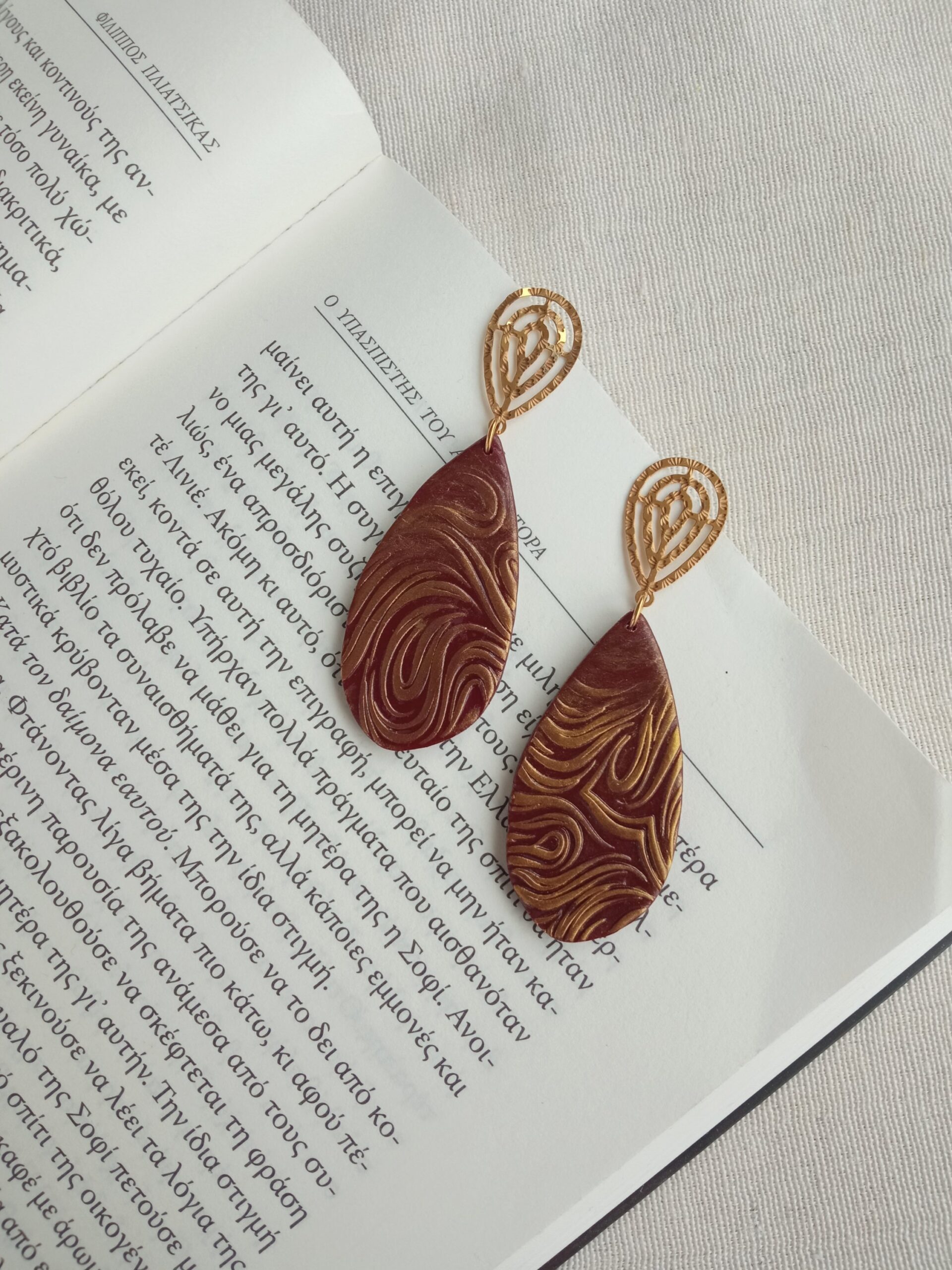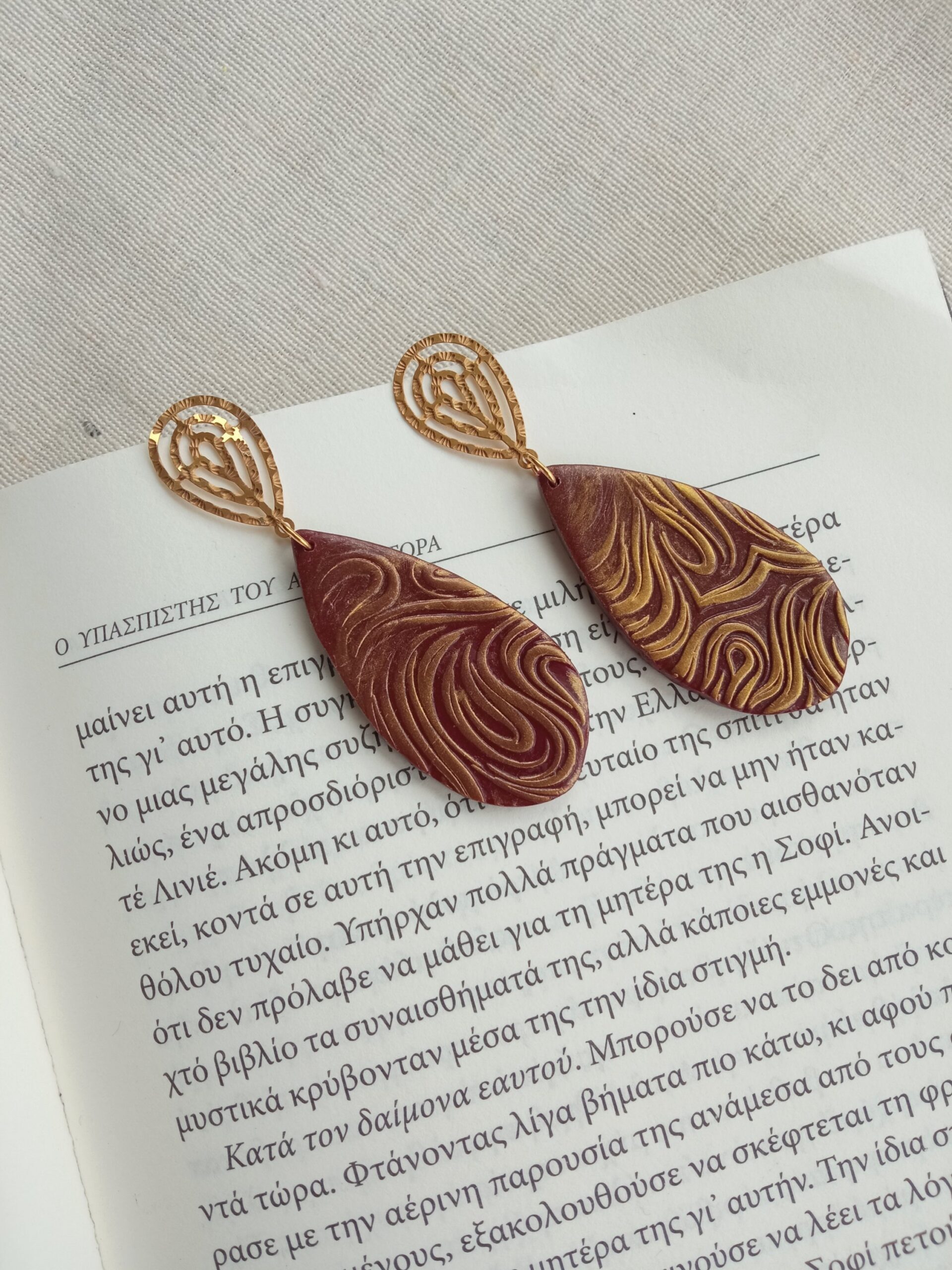 Embossed long earrings with a vintage vibe.