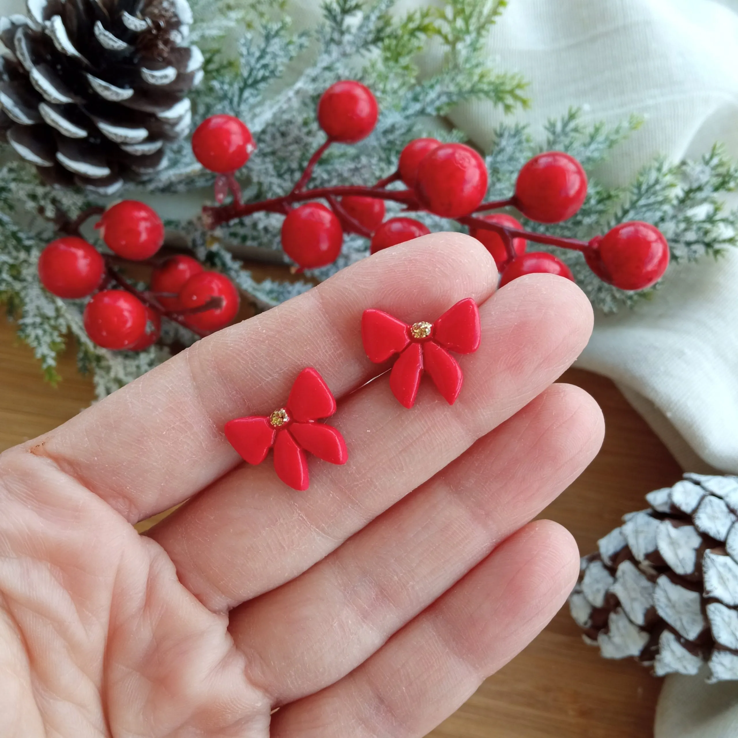 Materials: polymer clay, stainless steel earring posts, gloss varnish.