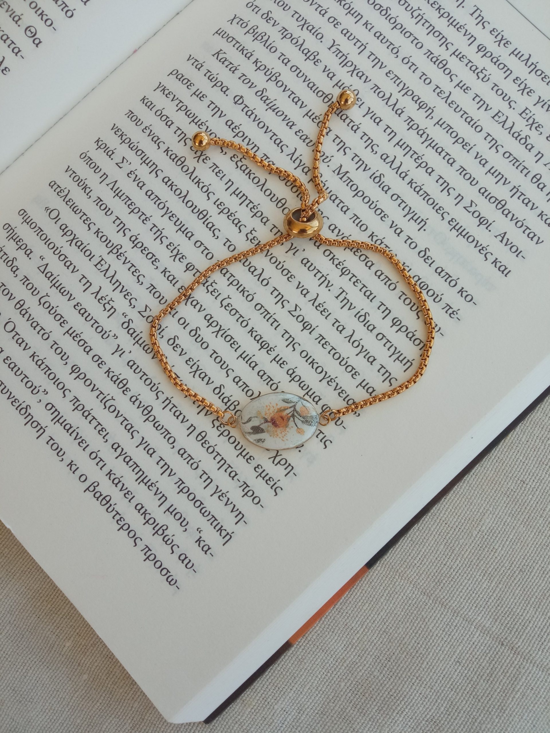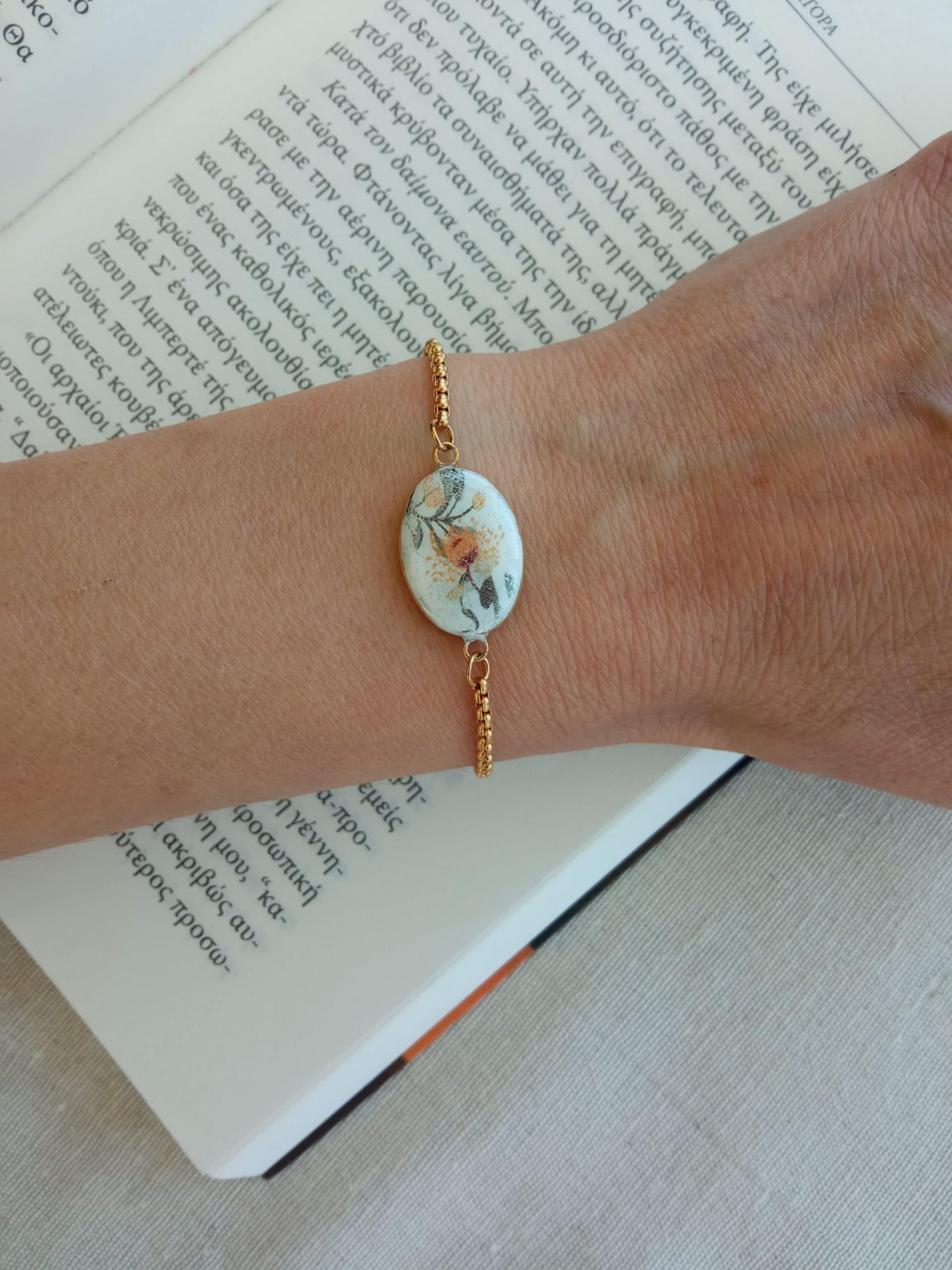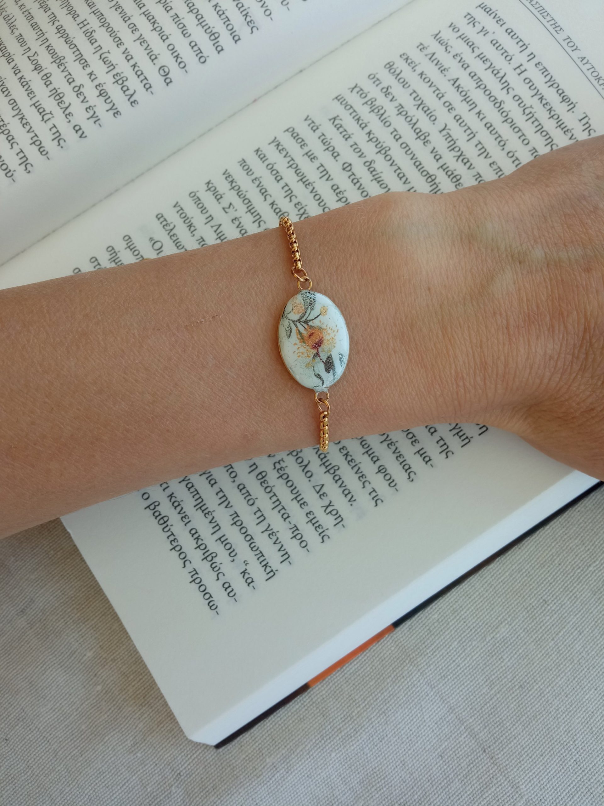 Materials: polymer clay, UV resin, stainless steel bracelet (adjustable size).