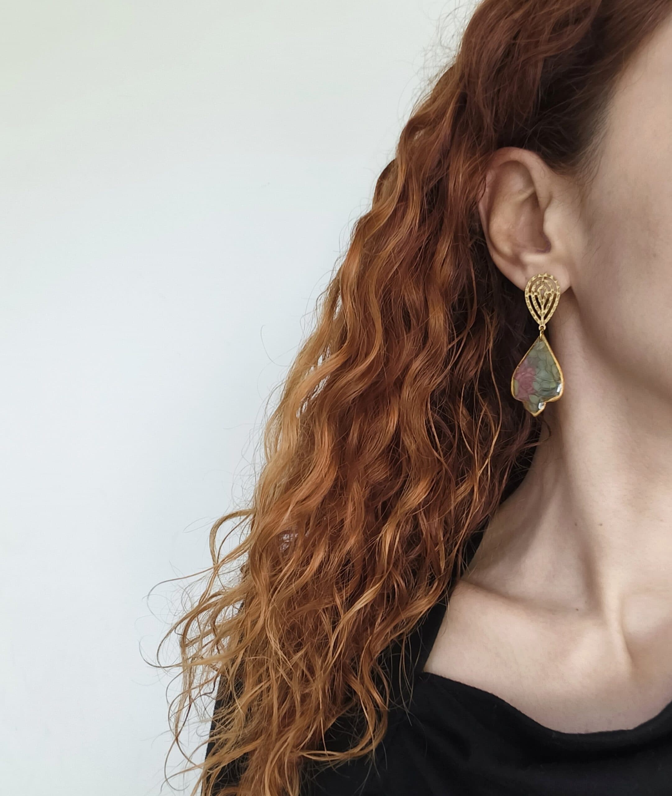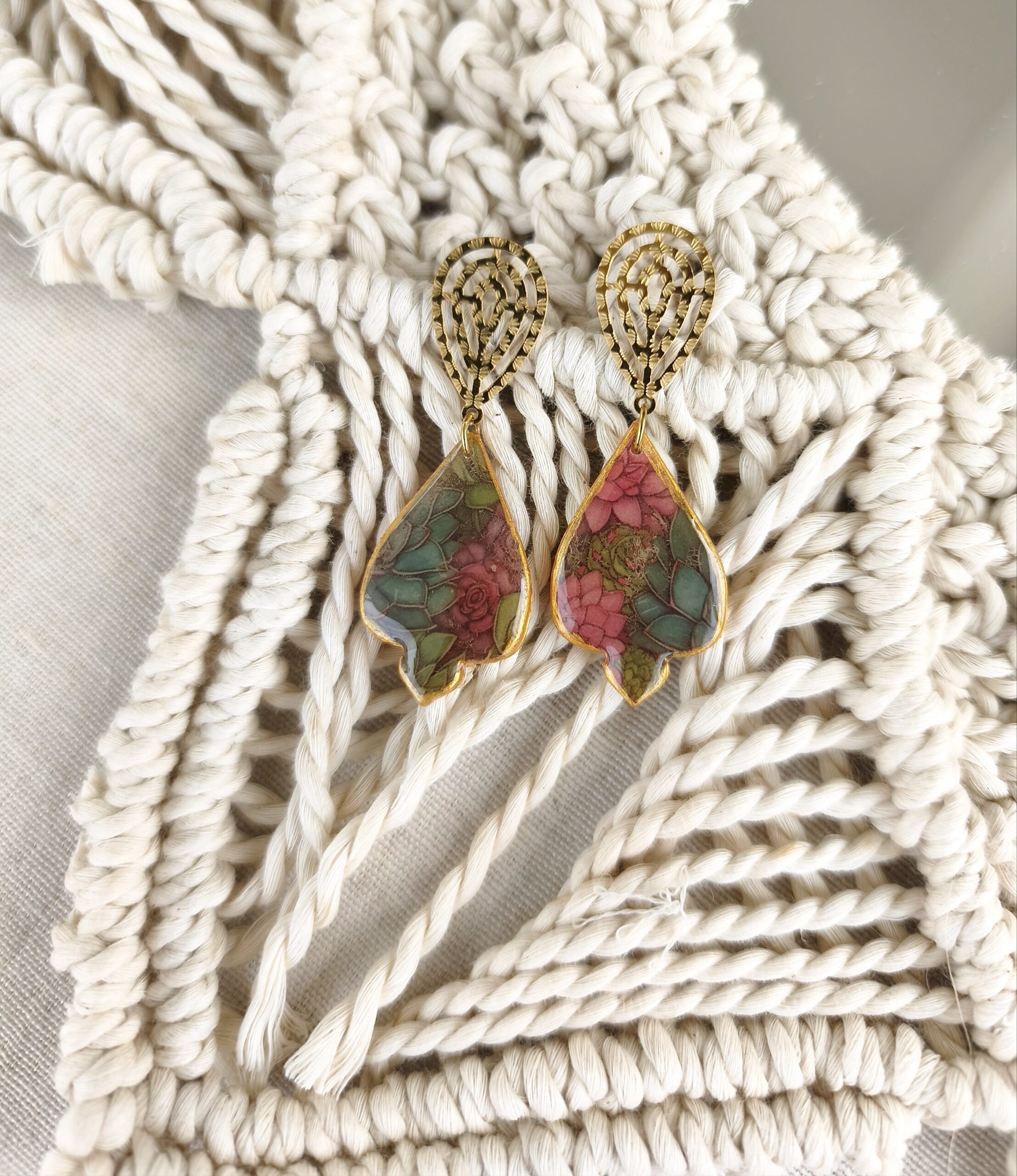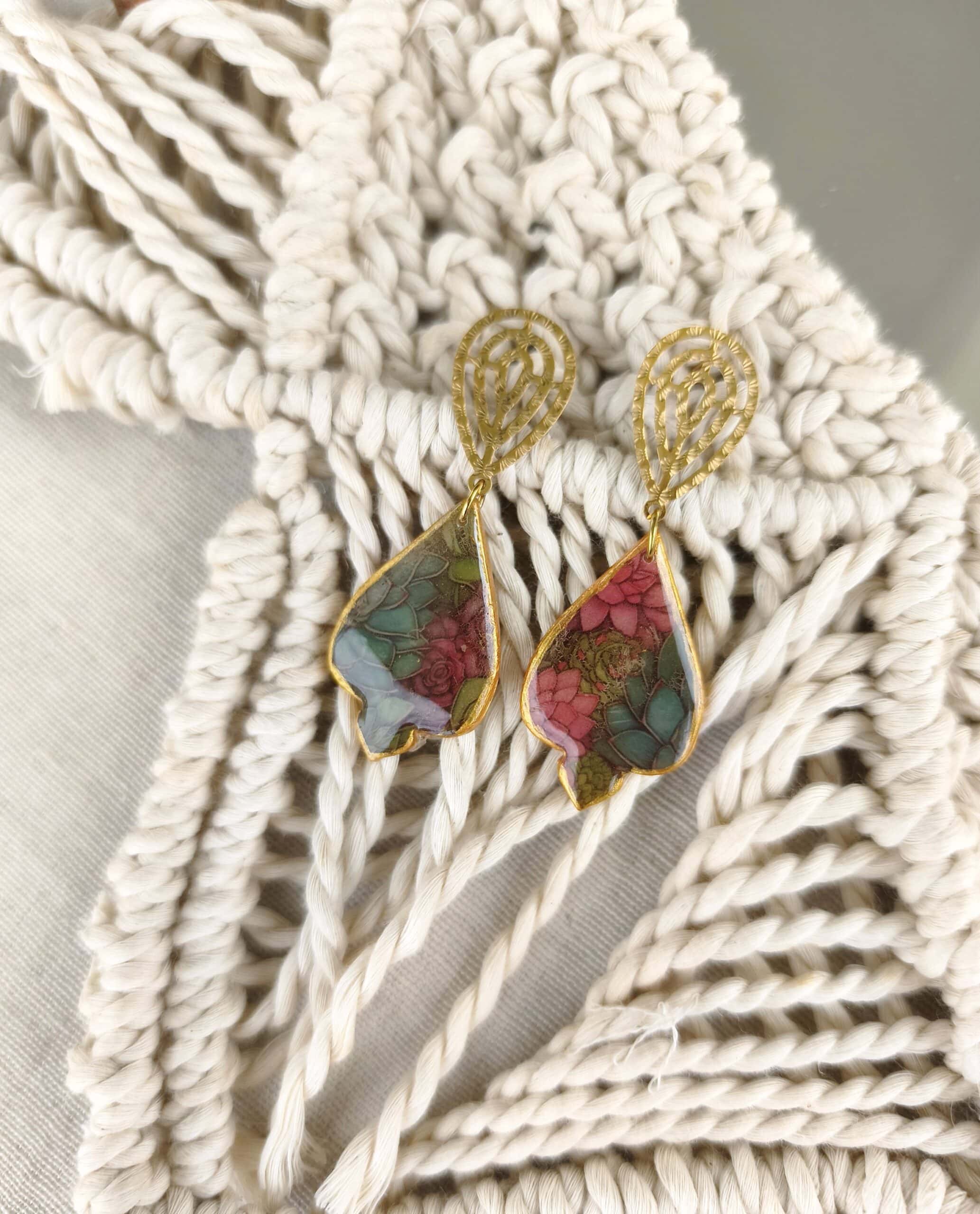 Materials: polymer clay, acrylic paint, UV resin, stainless steel earring studs.