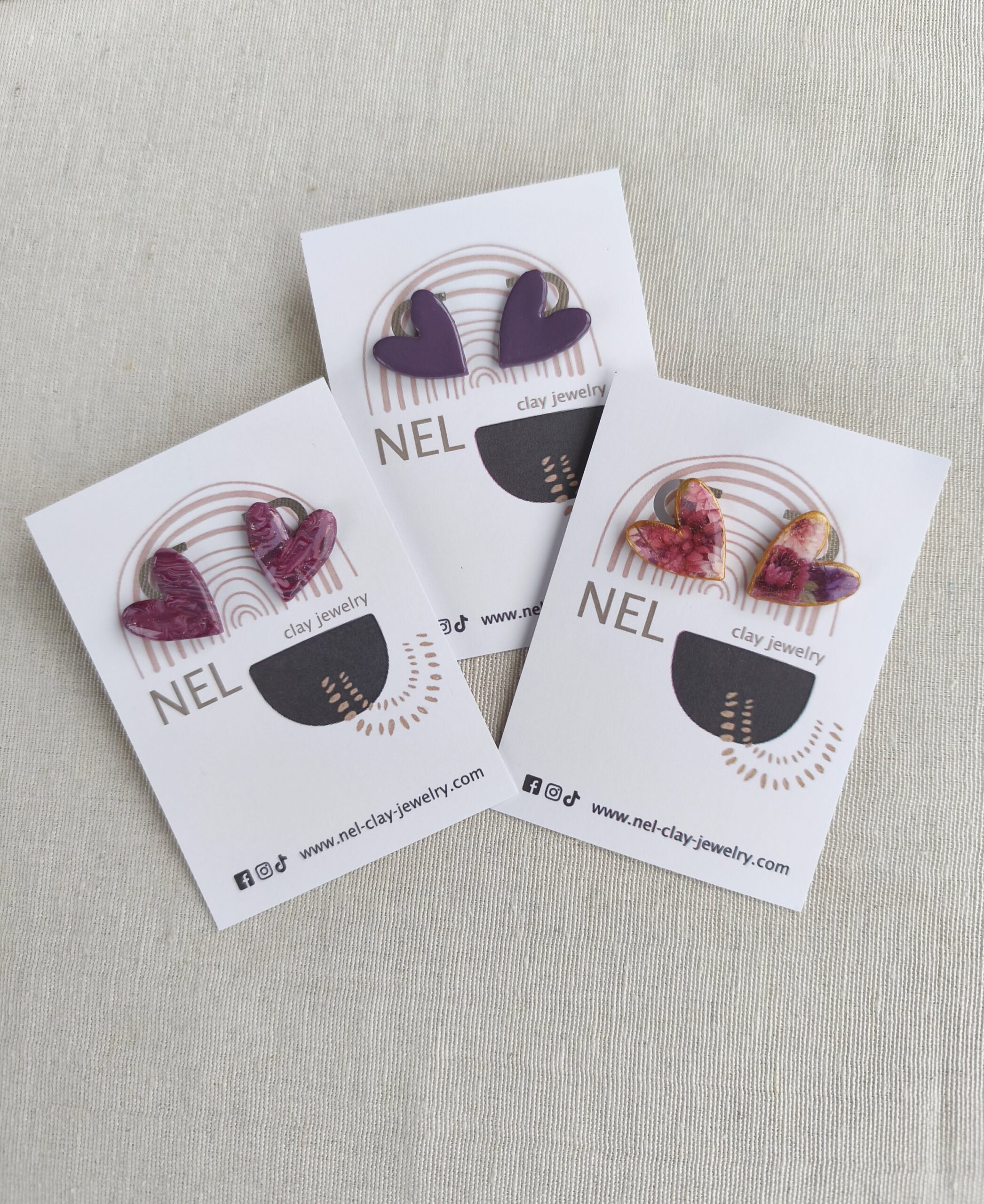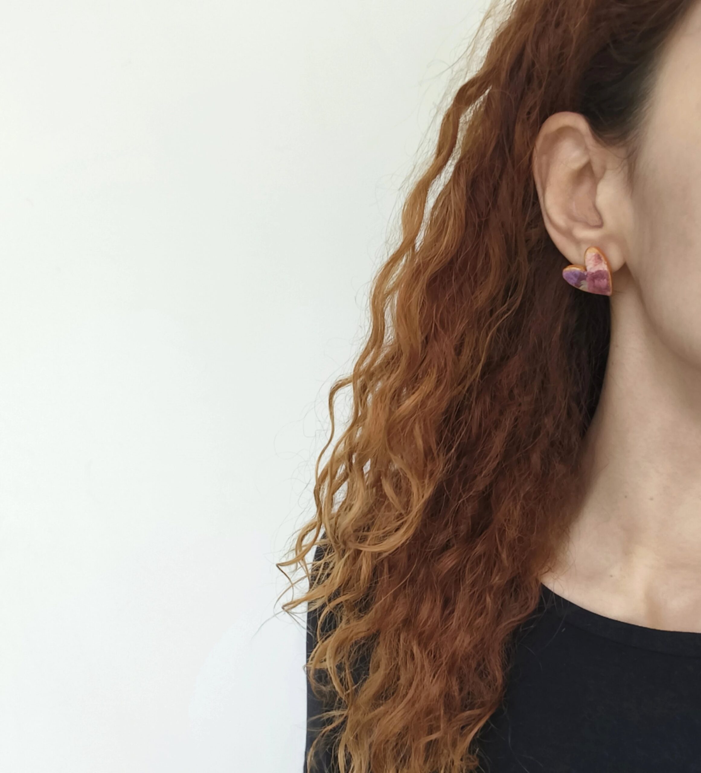 Unique handmade heart stud earrings in three colours. Small, cute and easy to wear in various occasions. Ideal for adding a playful touch to your outfits.