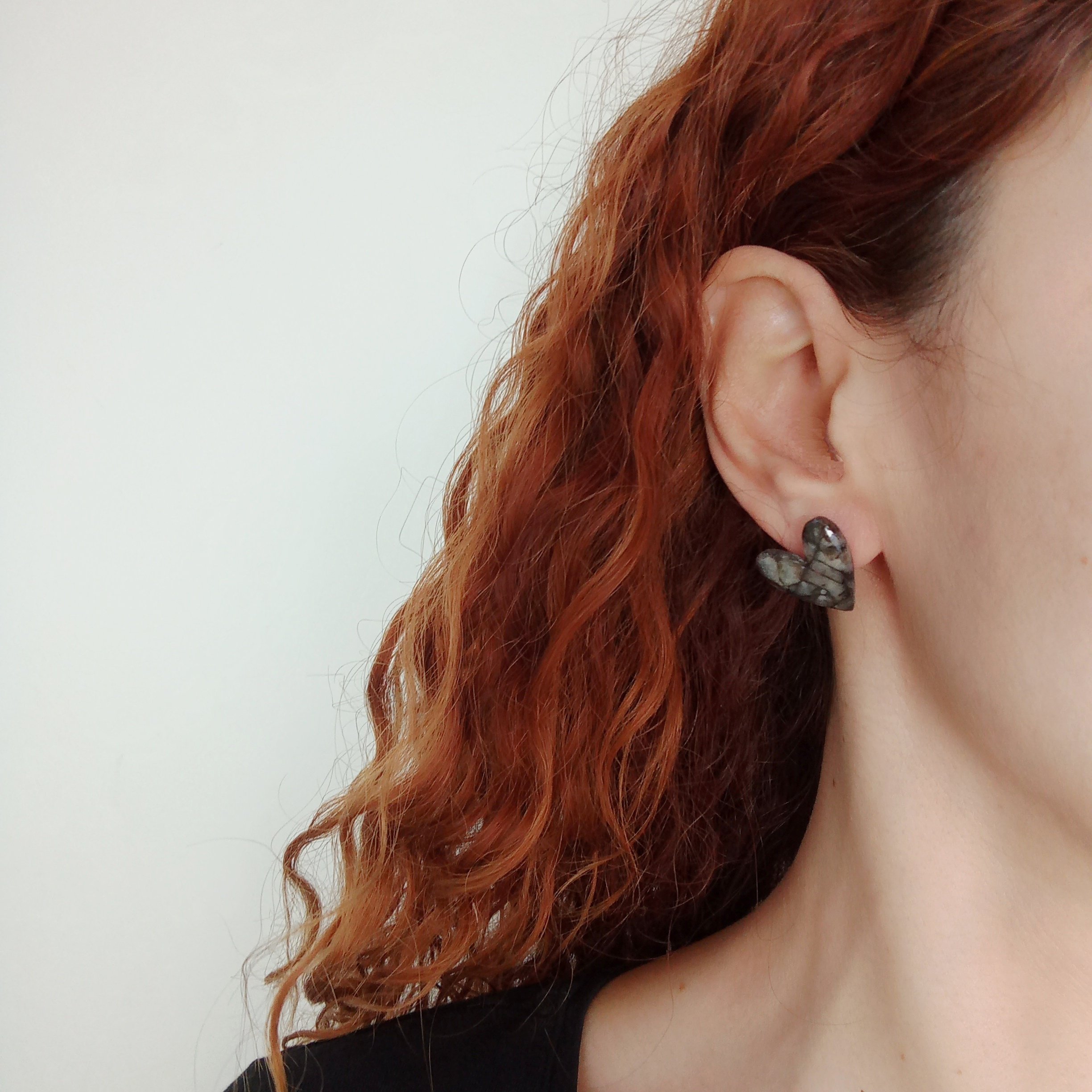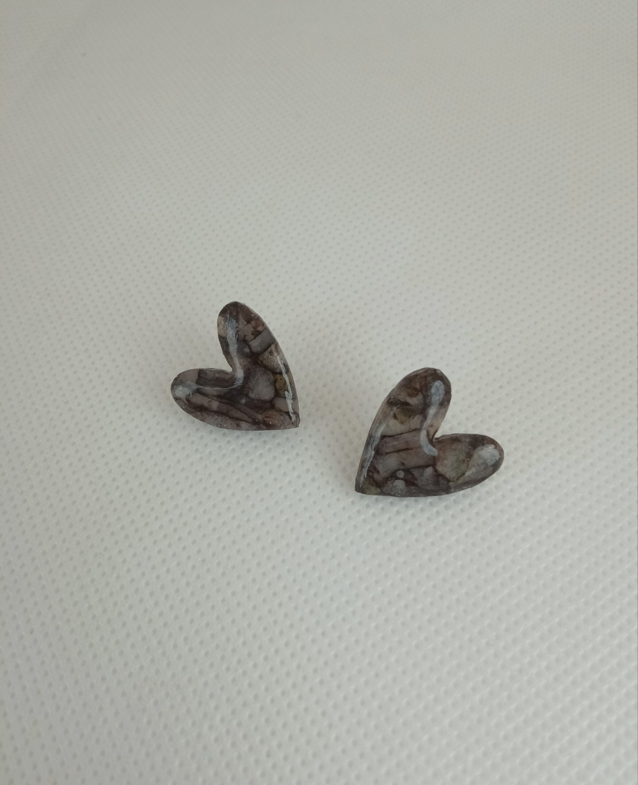 Marbled black and translucent heart studs