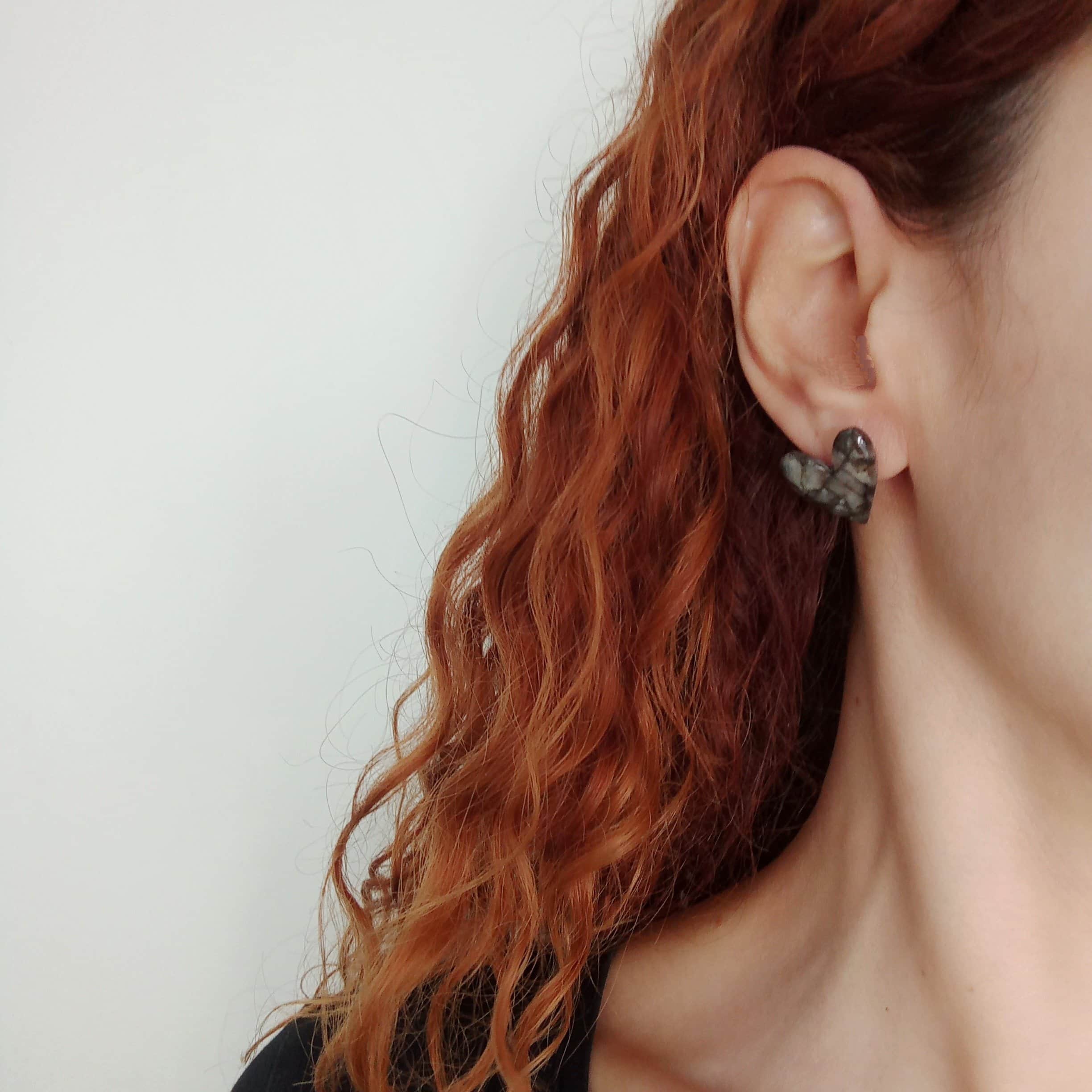 Unique handmade stud earrings in glossy translucent black that can be worn from morning till night, and literally for every occasion!