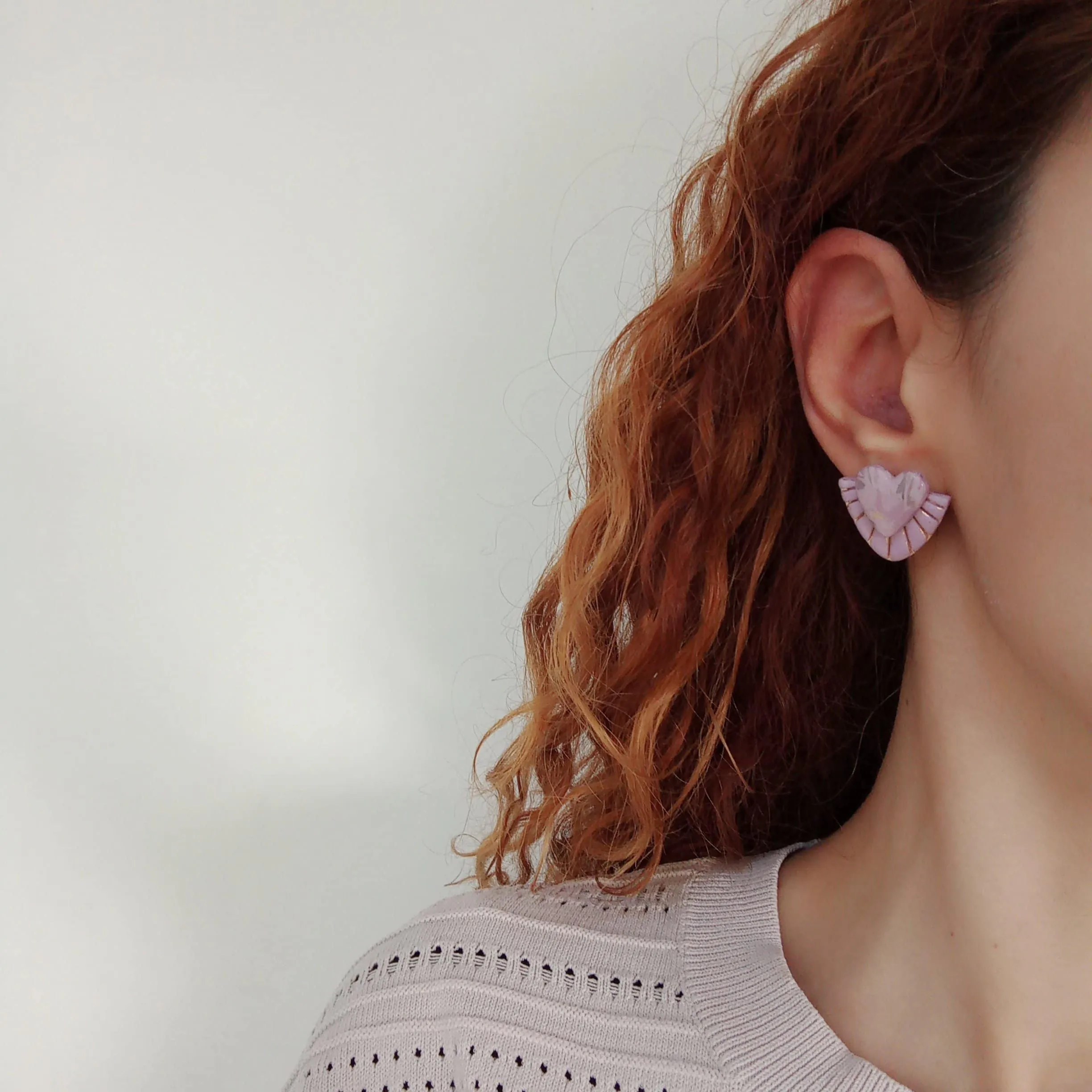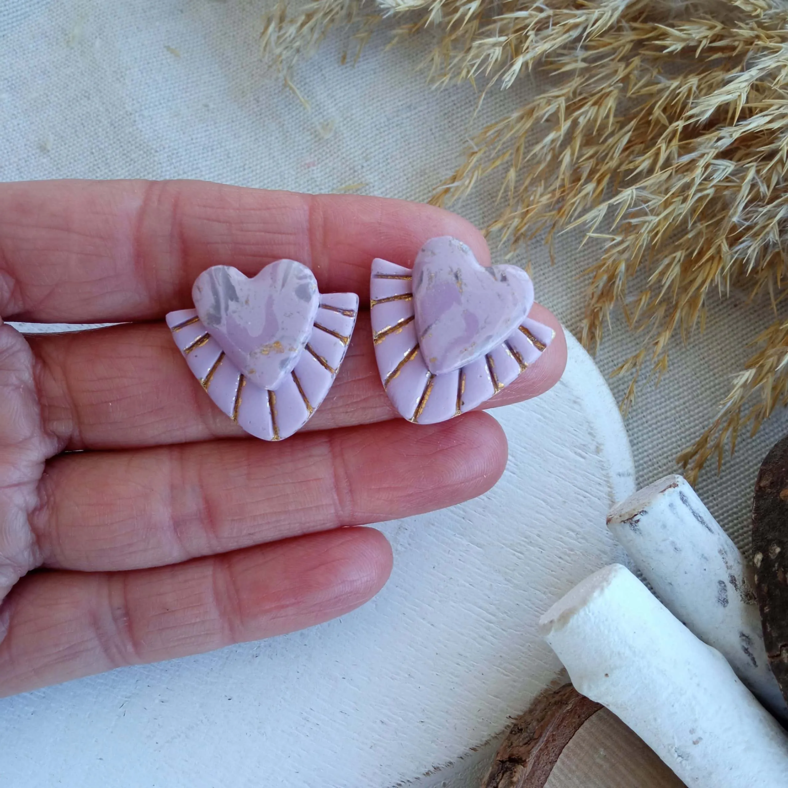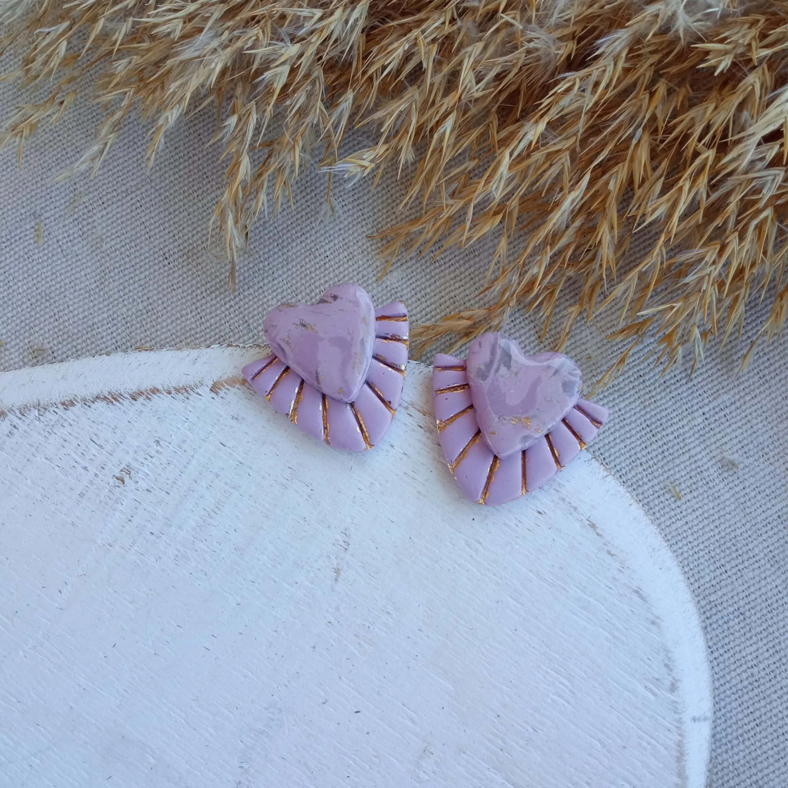 Materials: polymer clay, imitation gold leaf, UV resin, stainless steel earring posts.