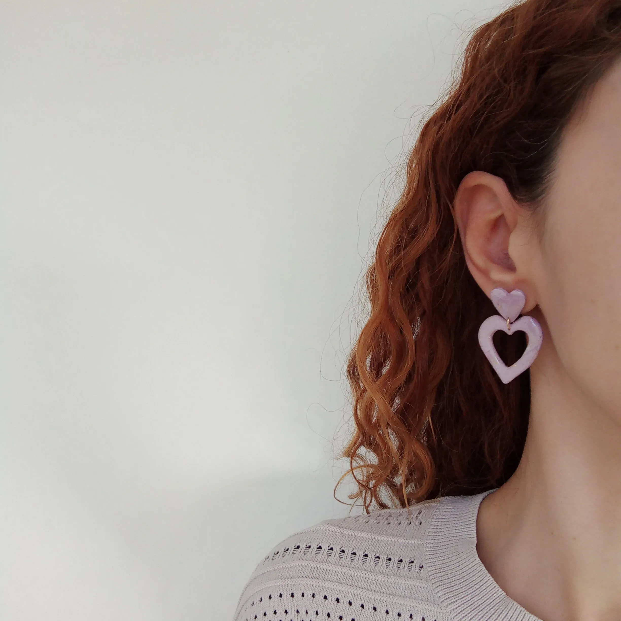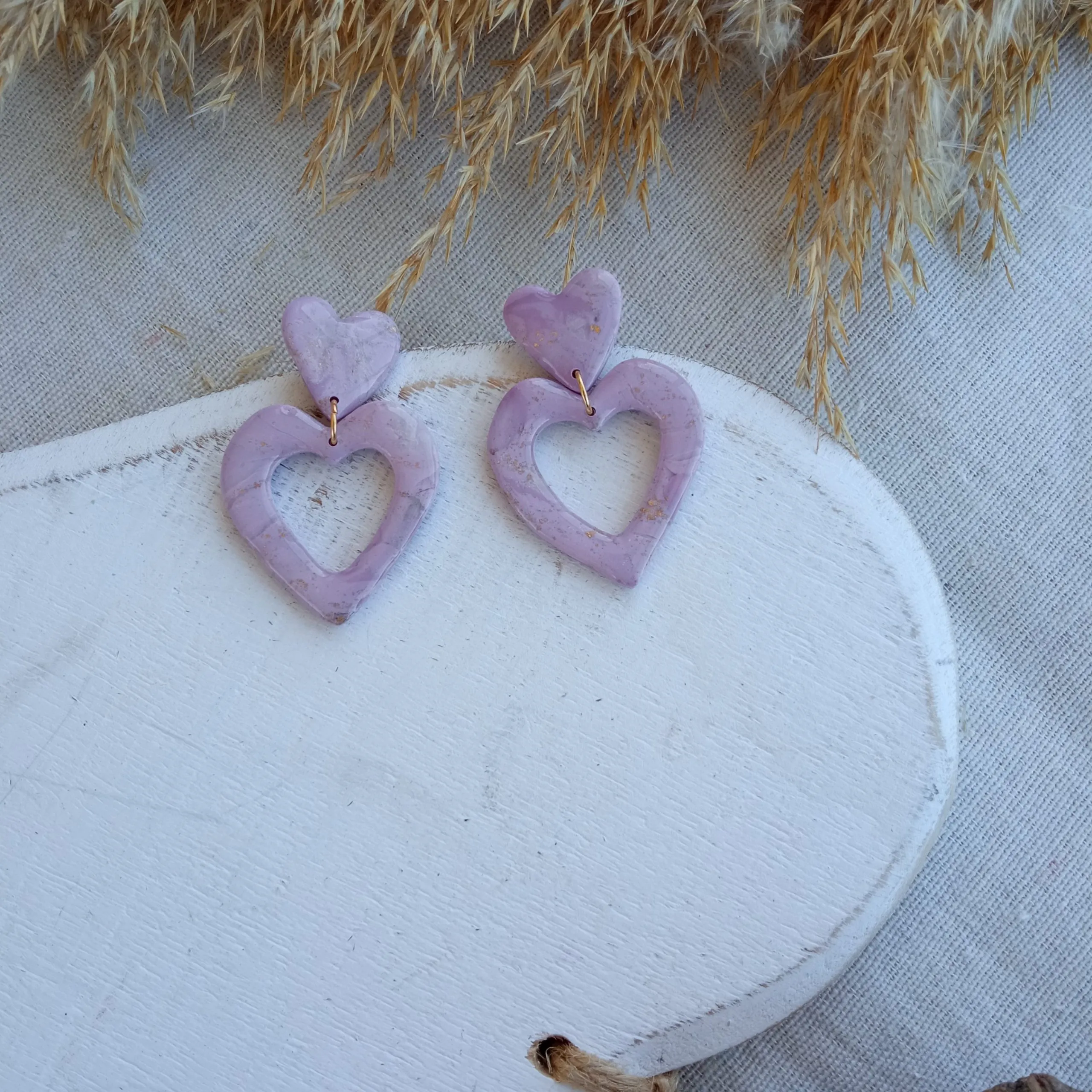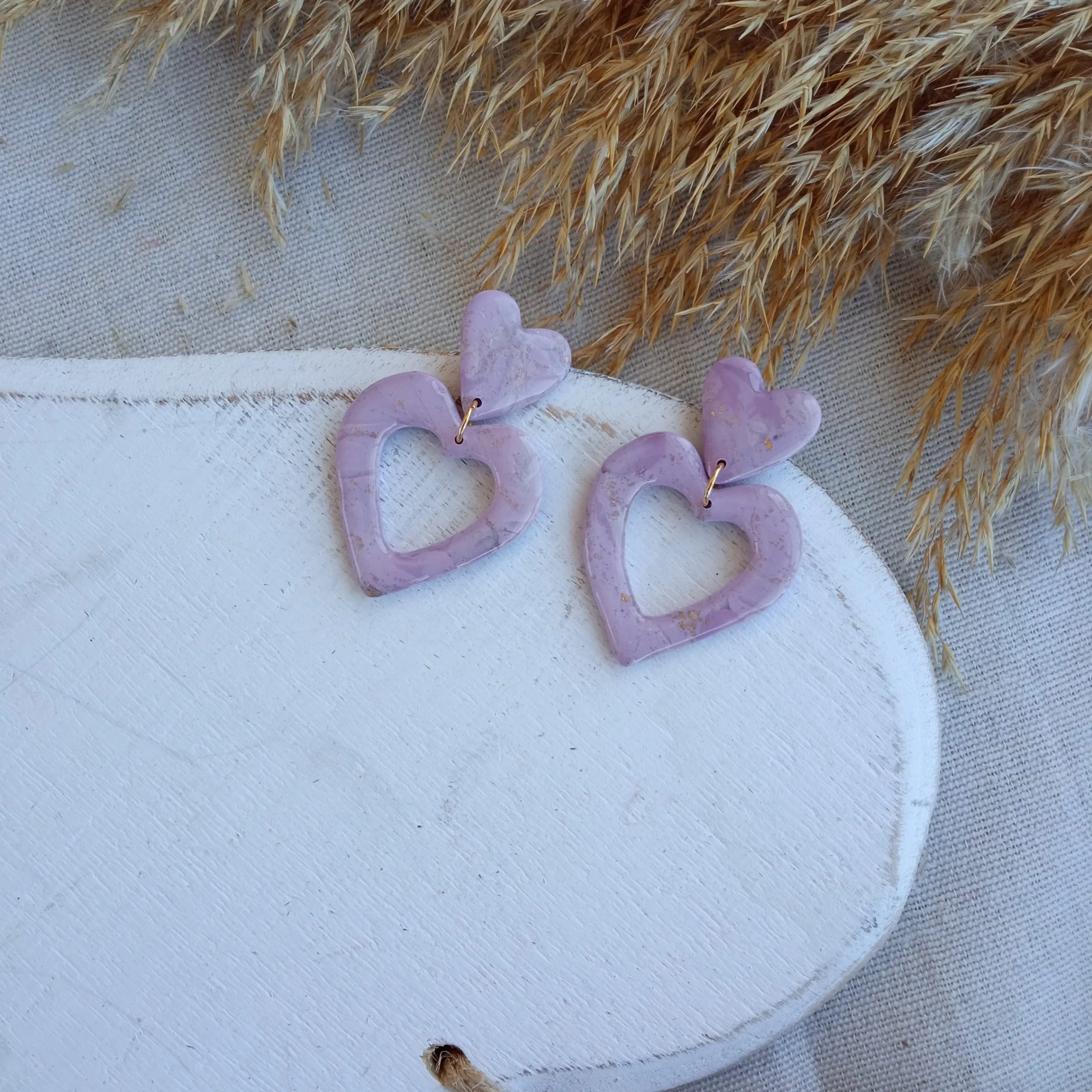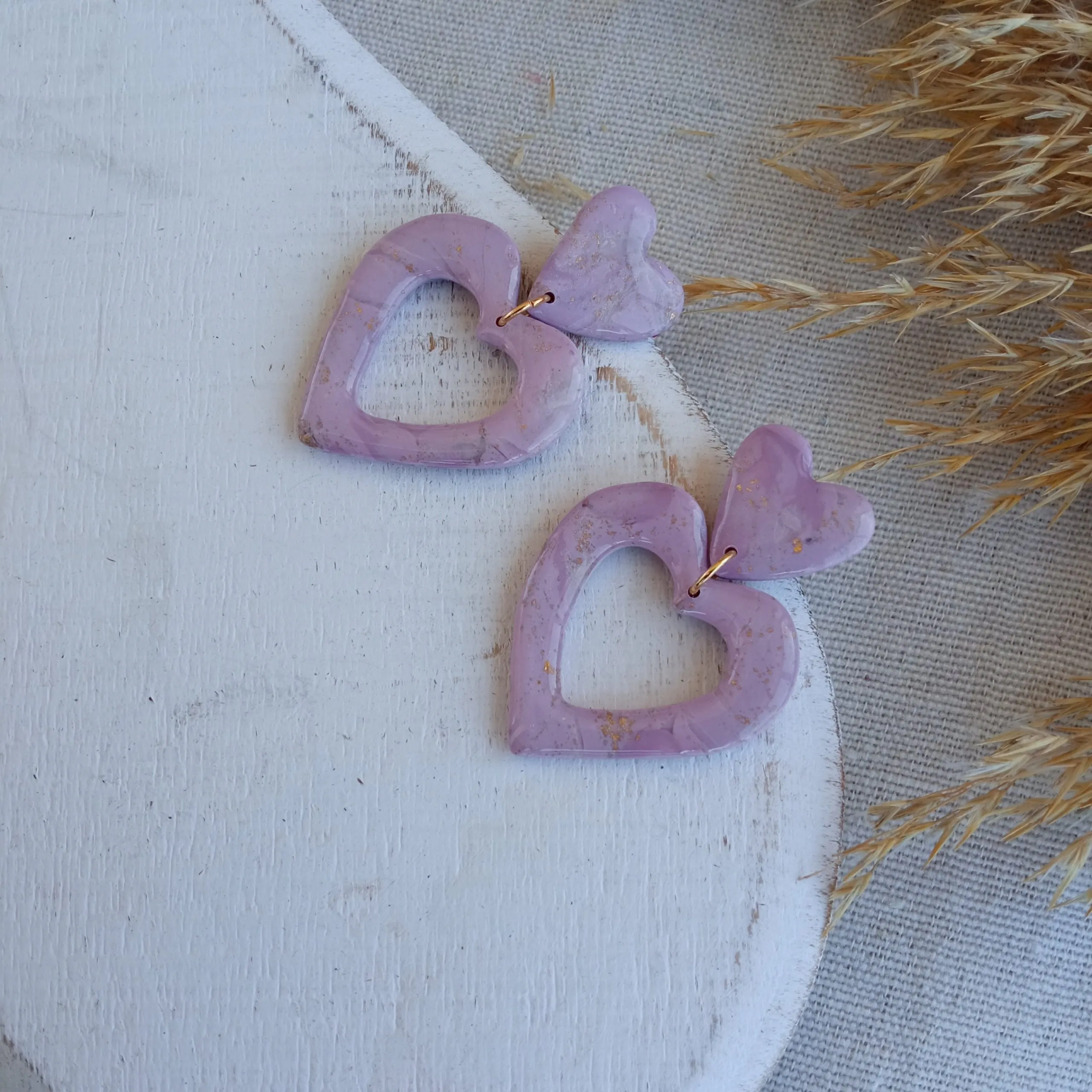 Marbled lilac small heart/ hollow heart earrings