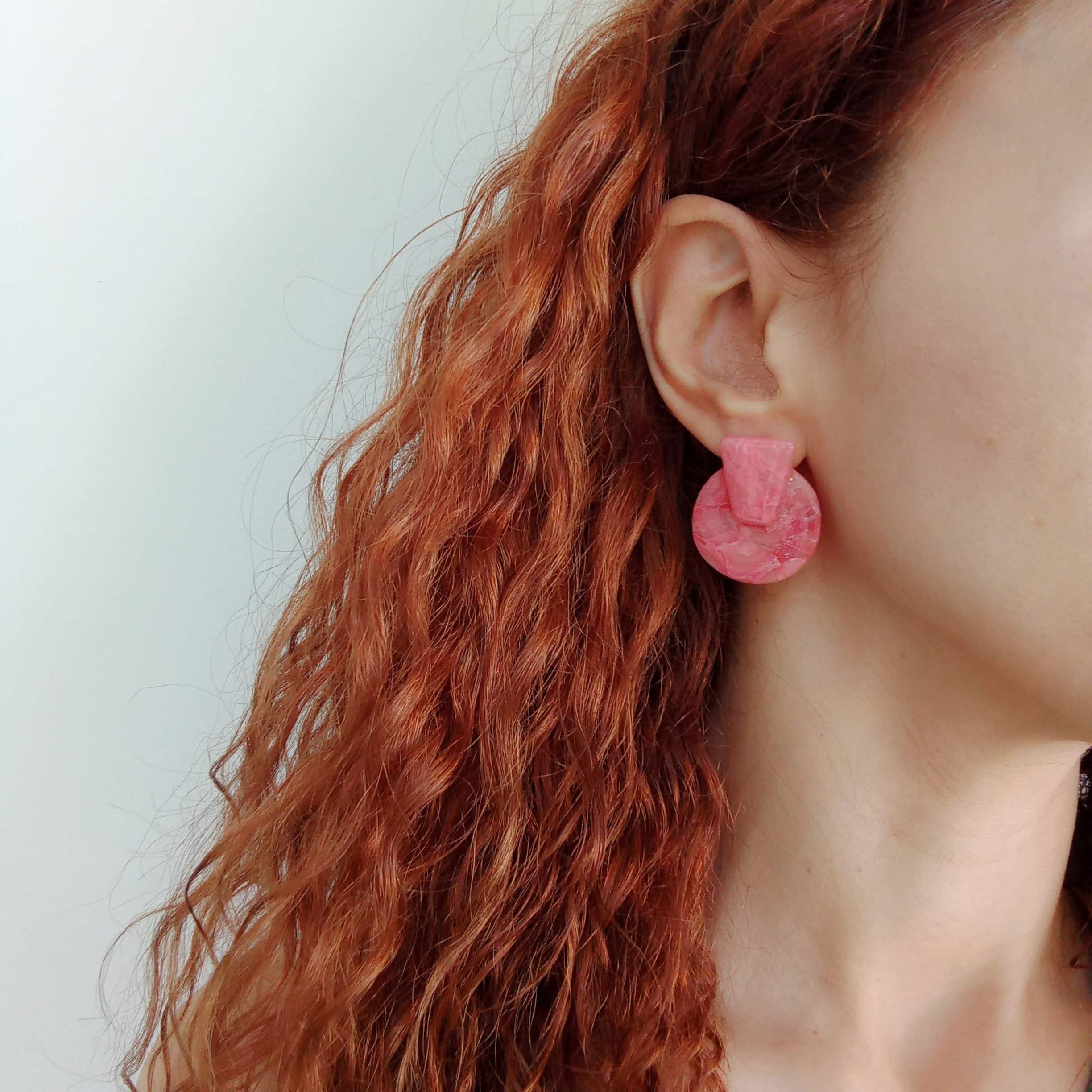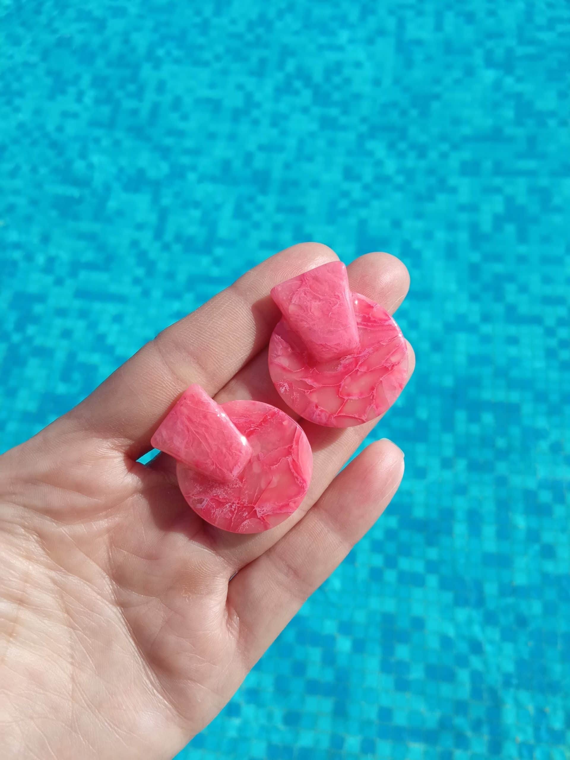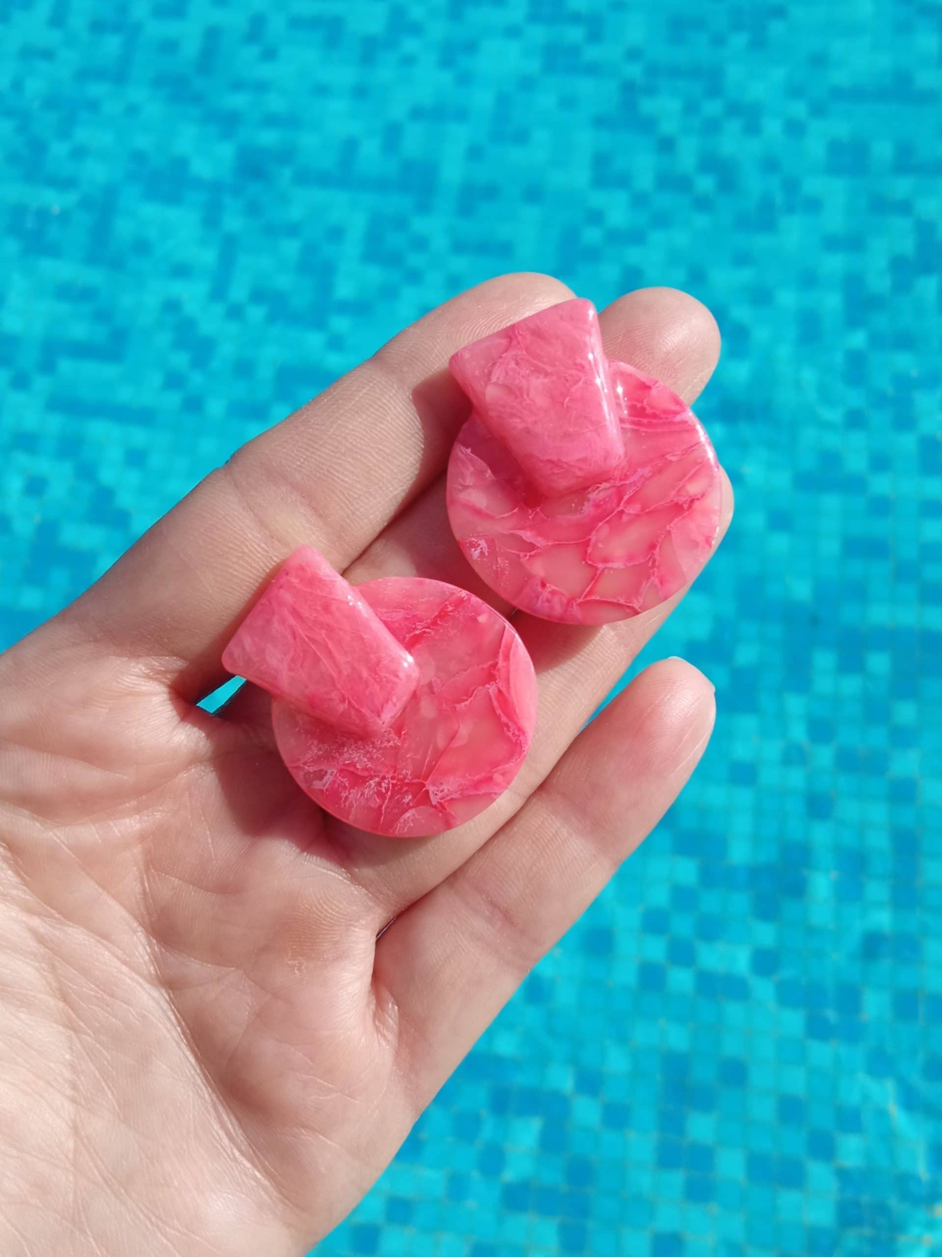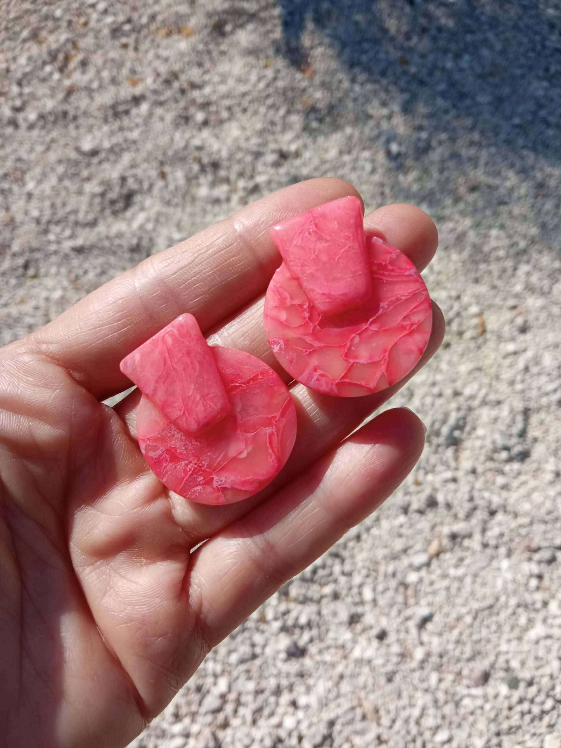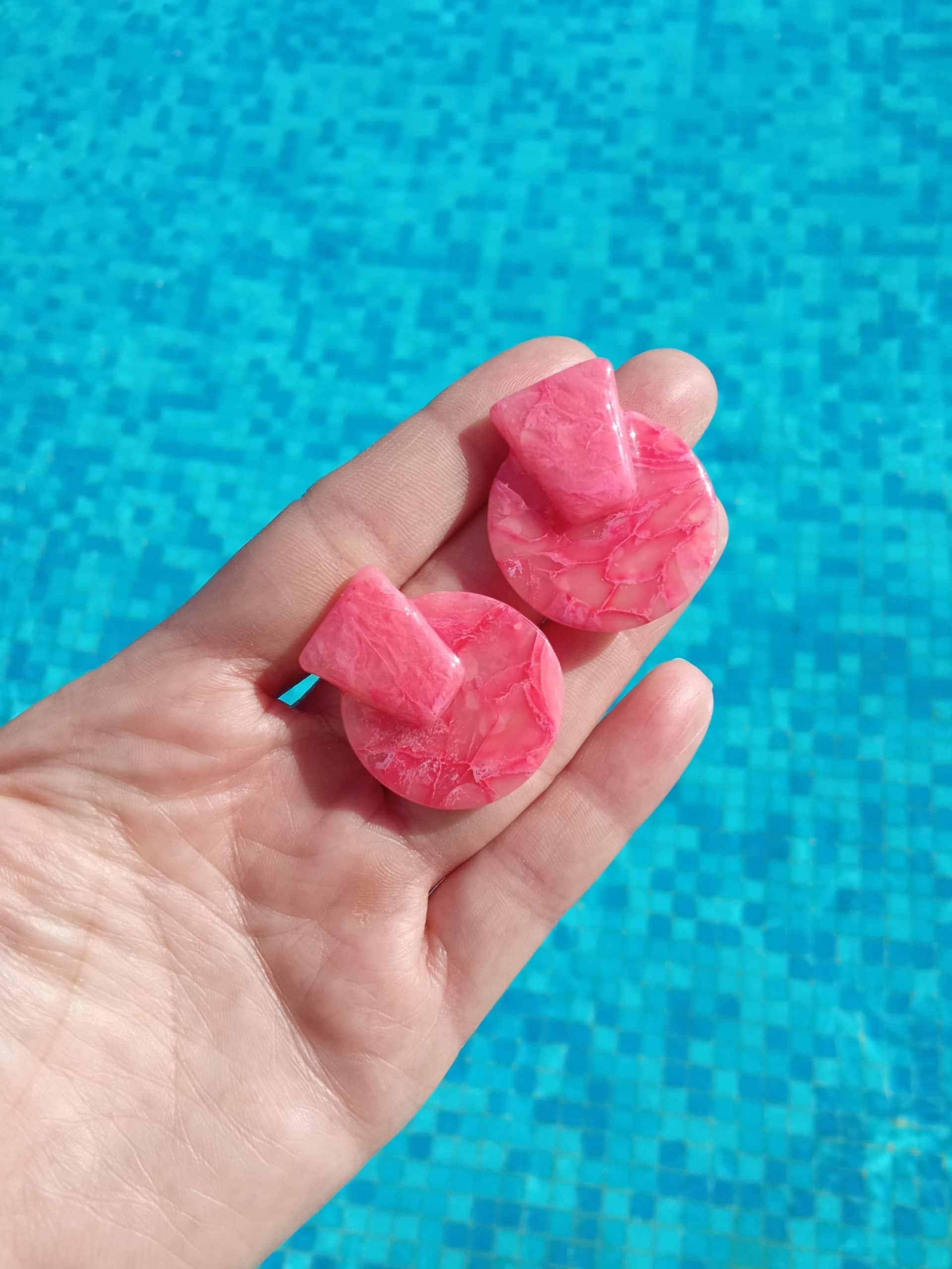 Materials: polymer clay, UV resin, stainless steel earring posts.