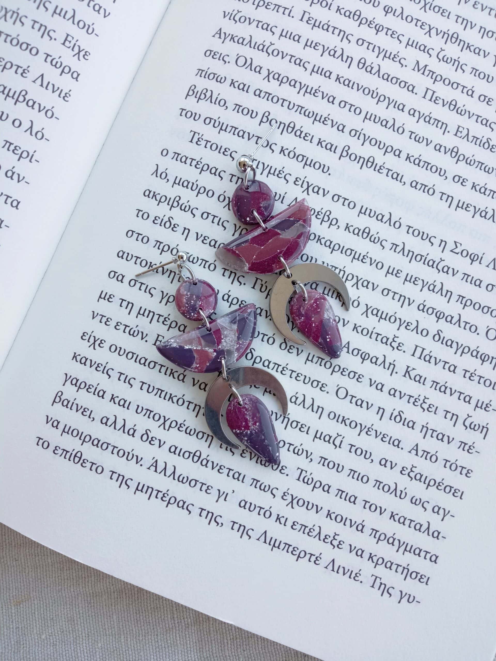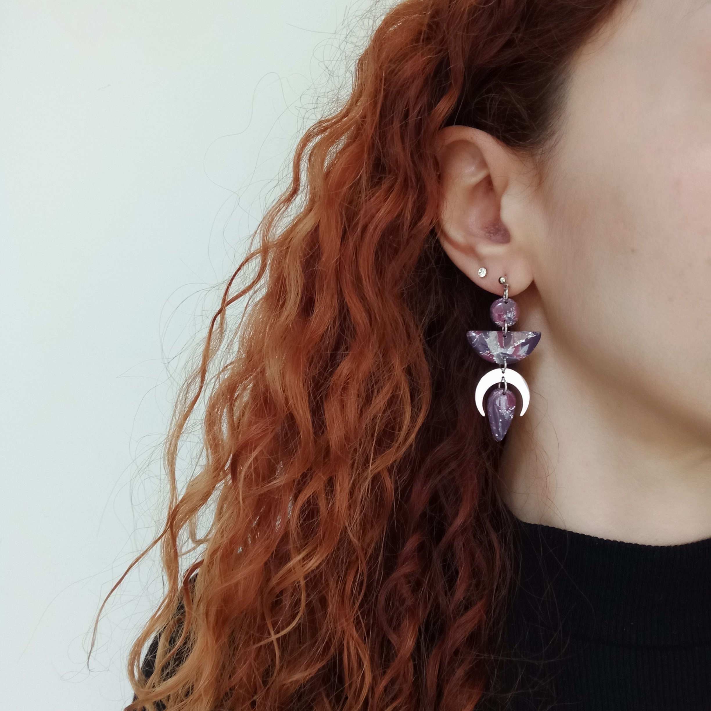 Materials: polymer clay, resin coating, imitation silver leaf, stainless steel earring studs.