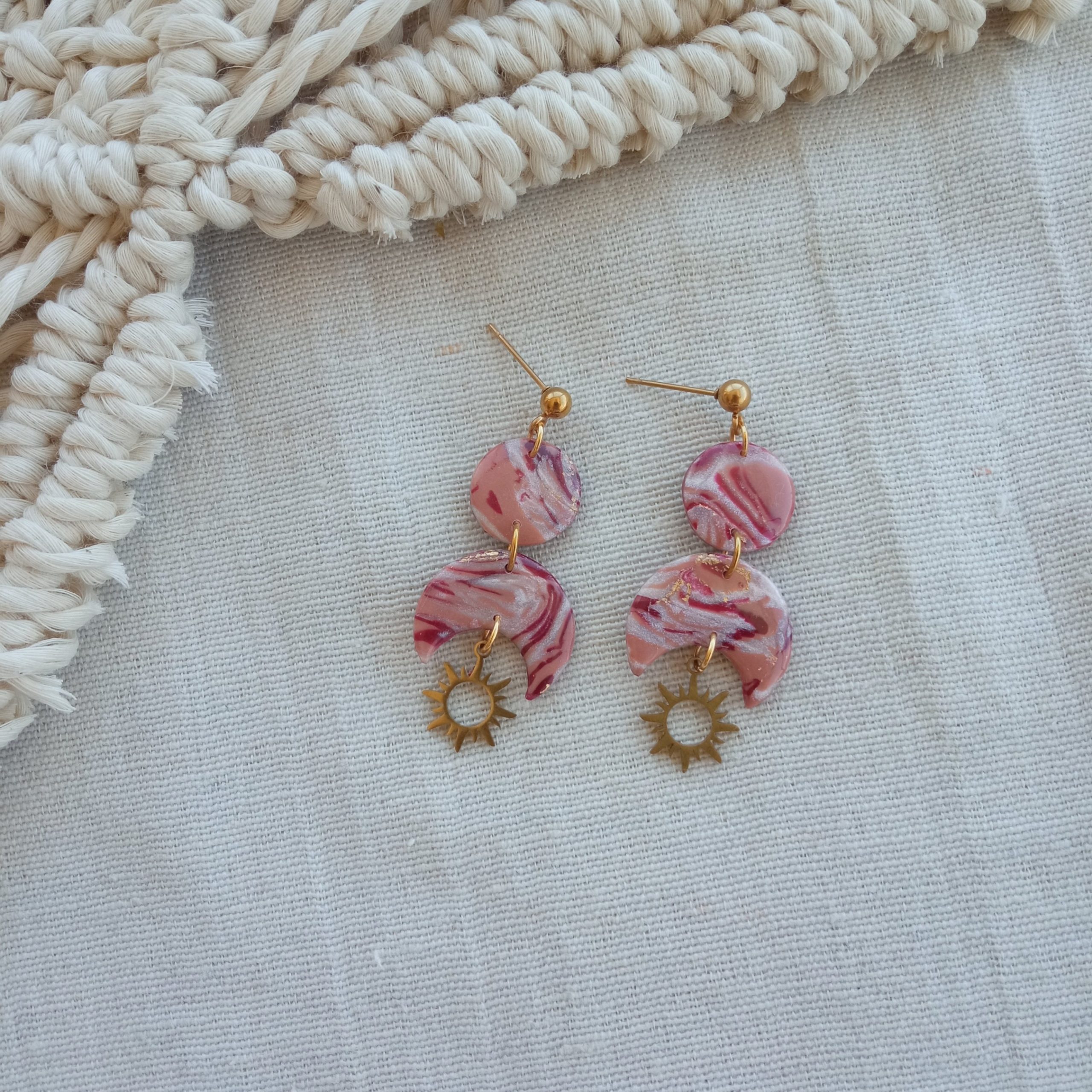 Marbled sedona and burgundy hobo earrings with sun charms