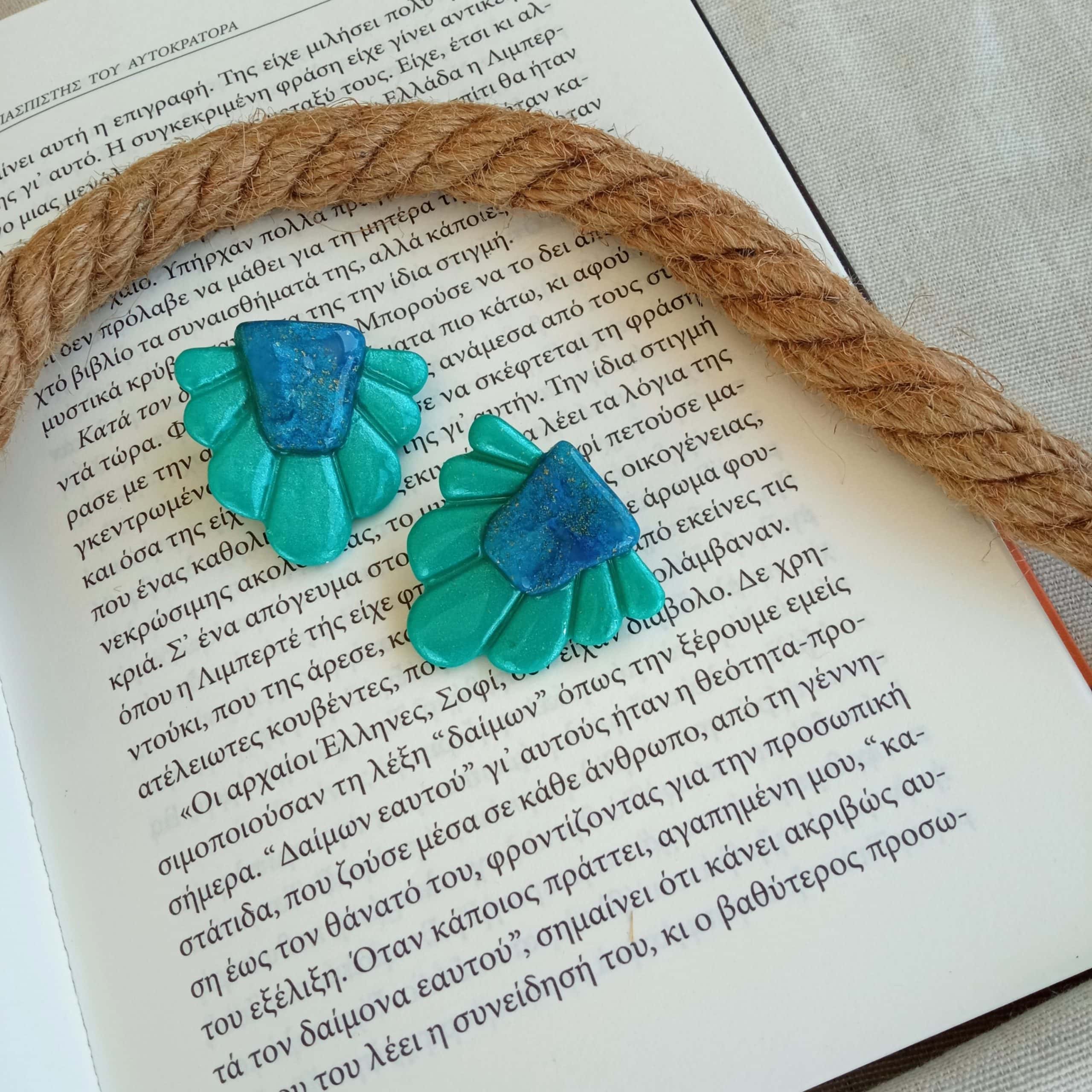 Materials: polymer clay, resin coating stainless steel earring posts.