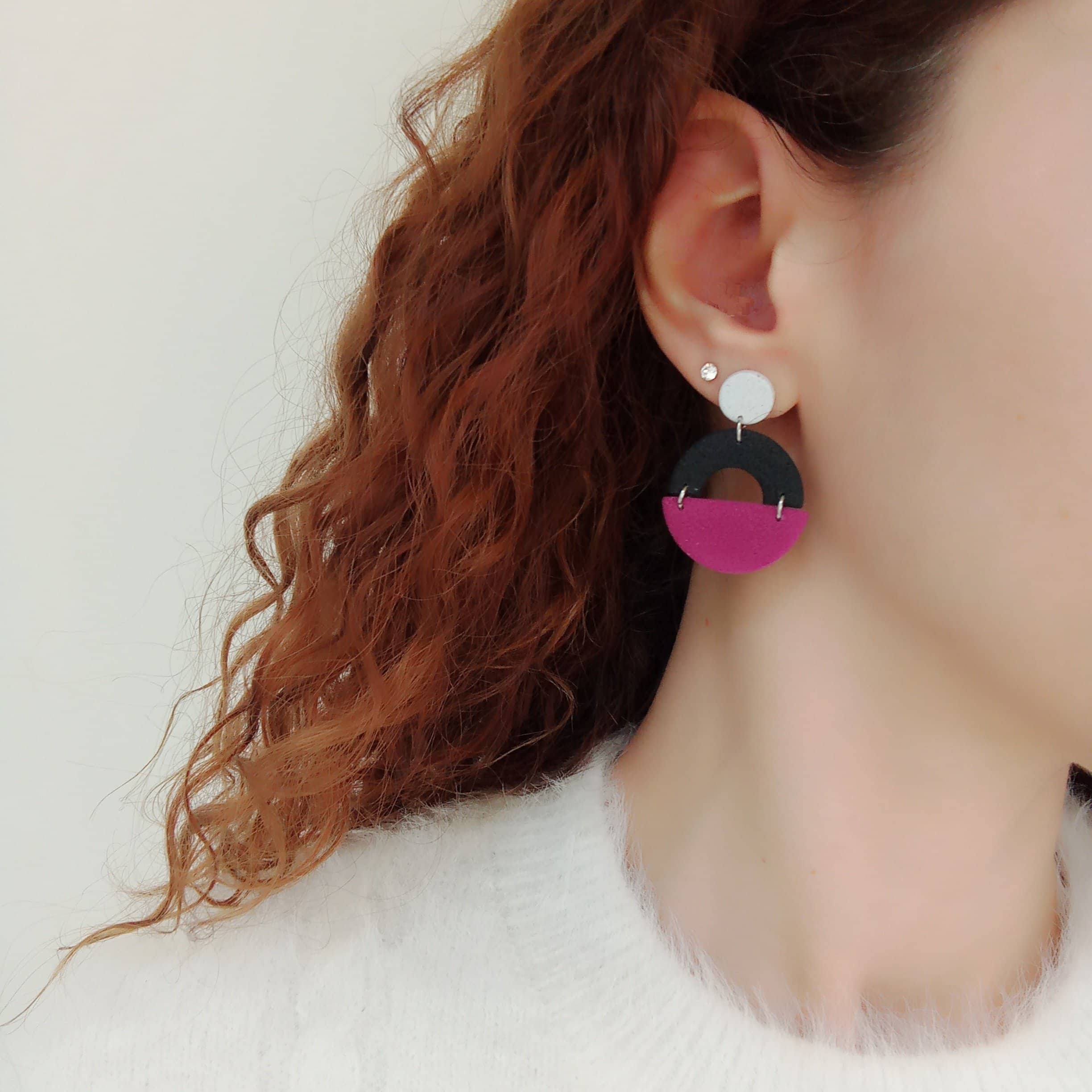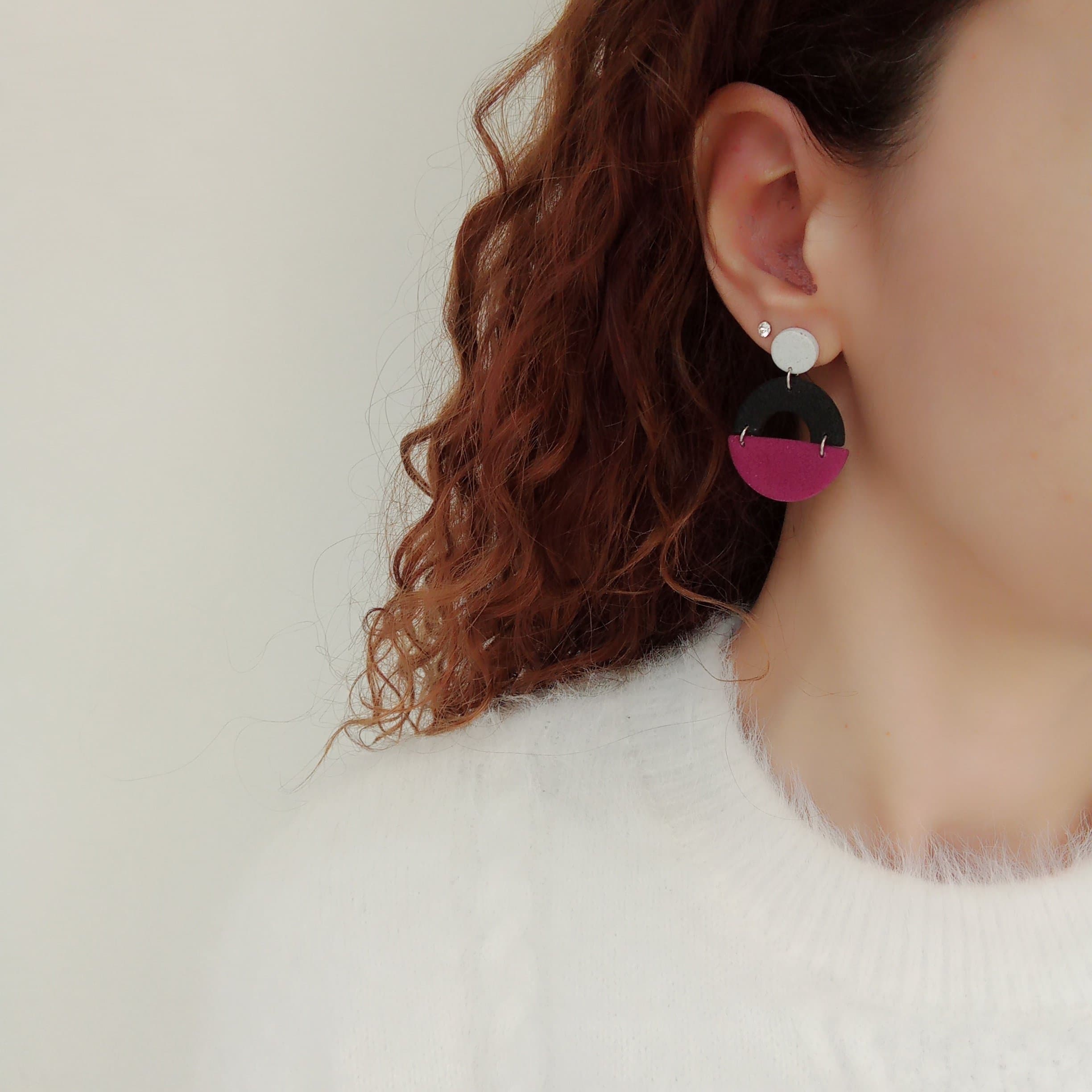 Off-white, black and purple statement earrings