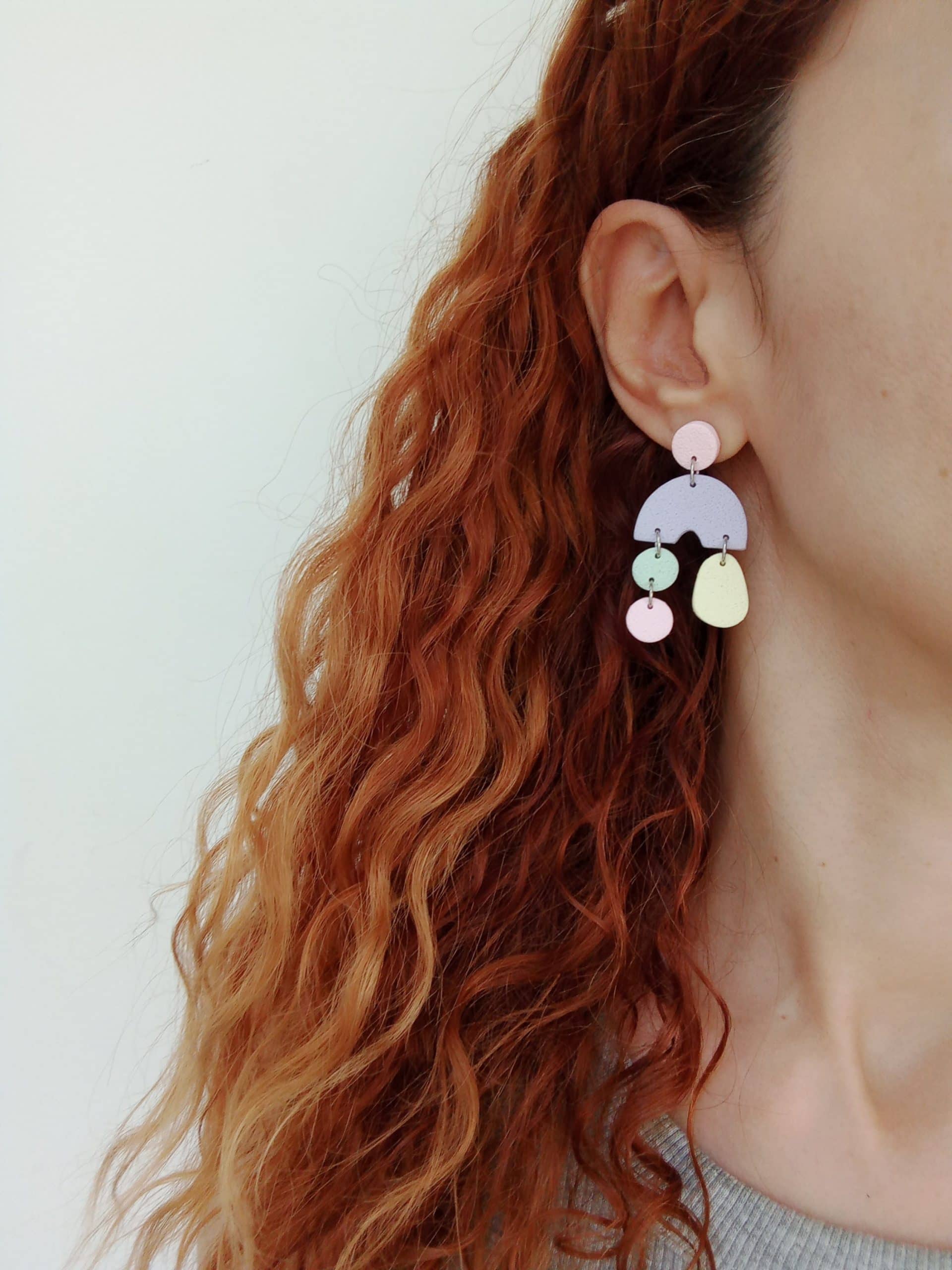 One of a kind, funky earrings in pastel hues to elevate your casual outfits.