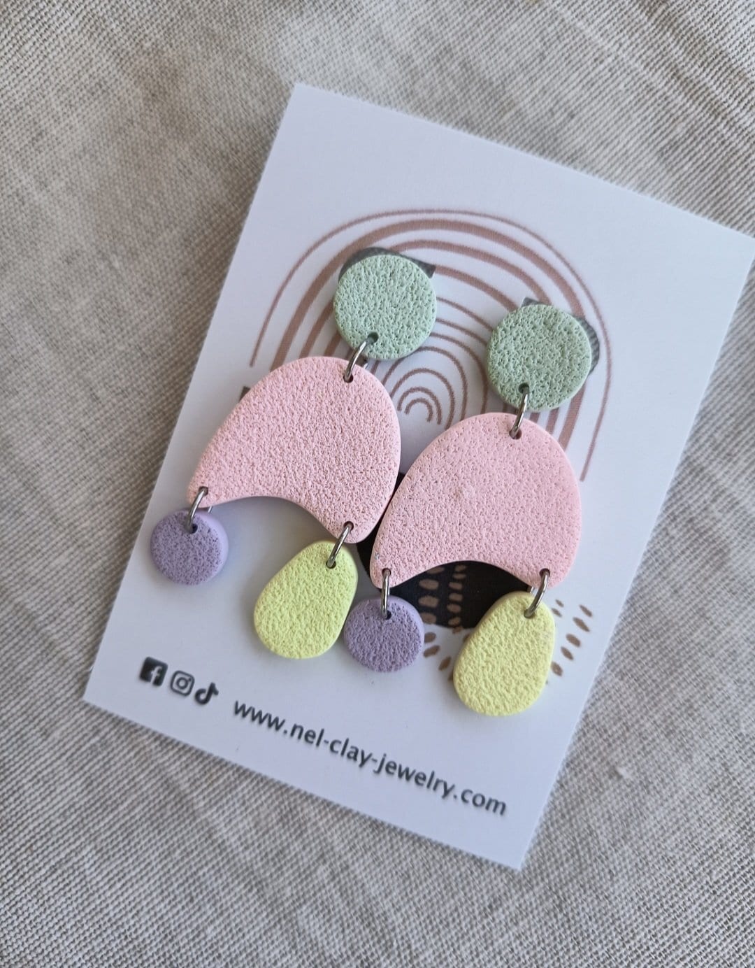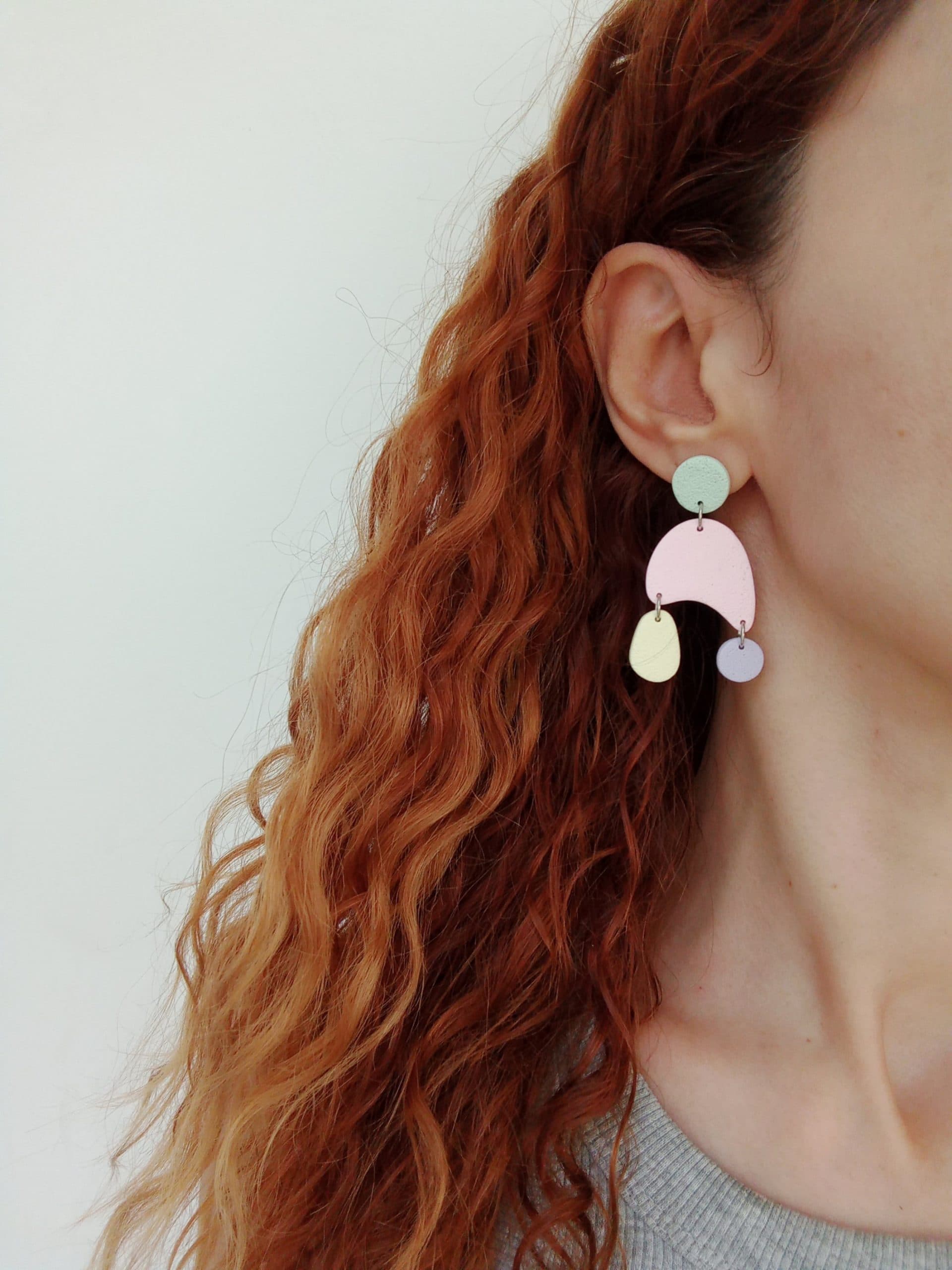 One of a kind, funky earrings in pastel hues to elevate your casual outfits.