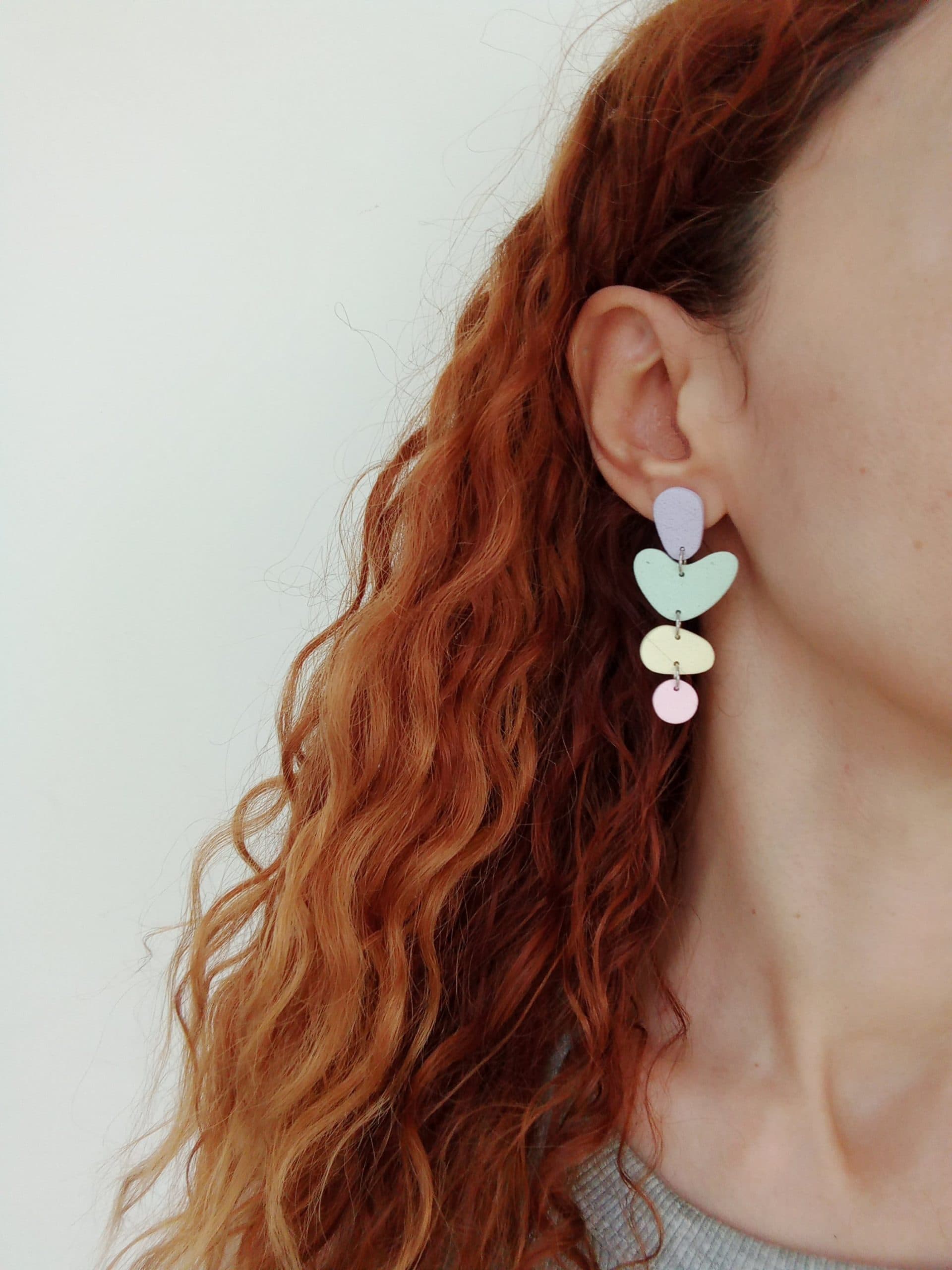 One of a kind, funky earrings in pastel hues to elevate your casual outfits.