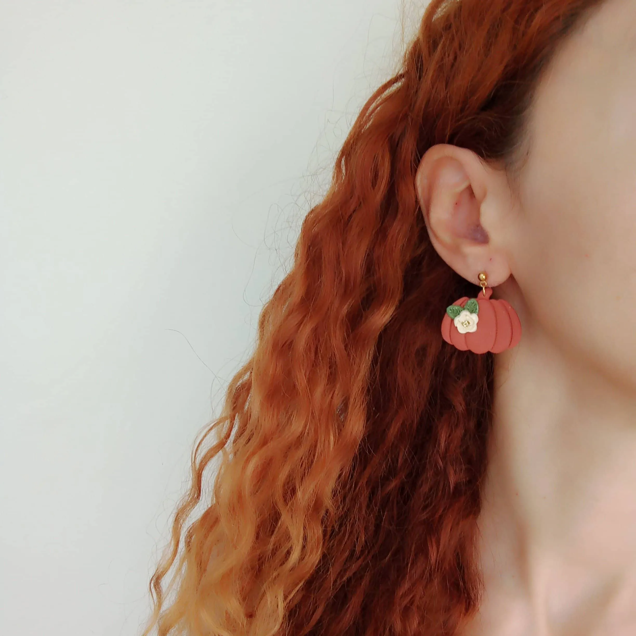 Pumpkin with flower dangle earrings