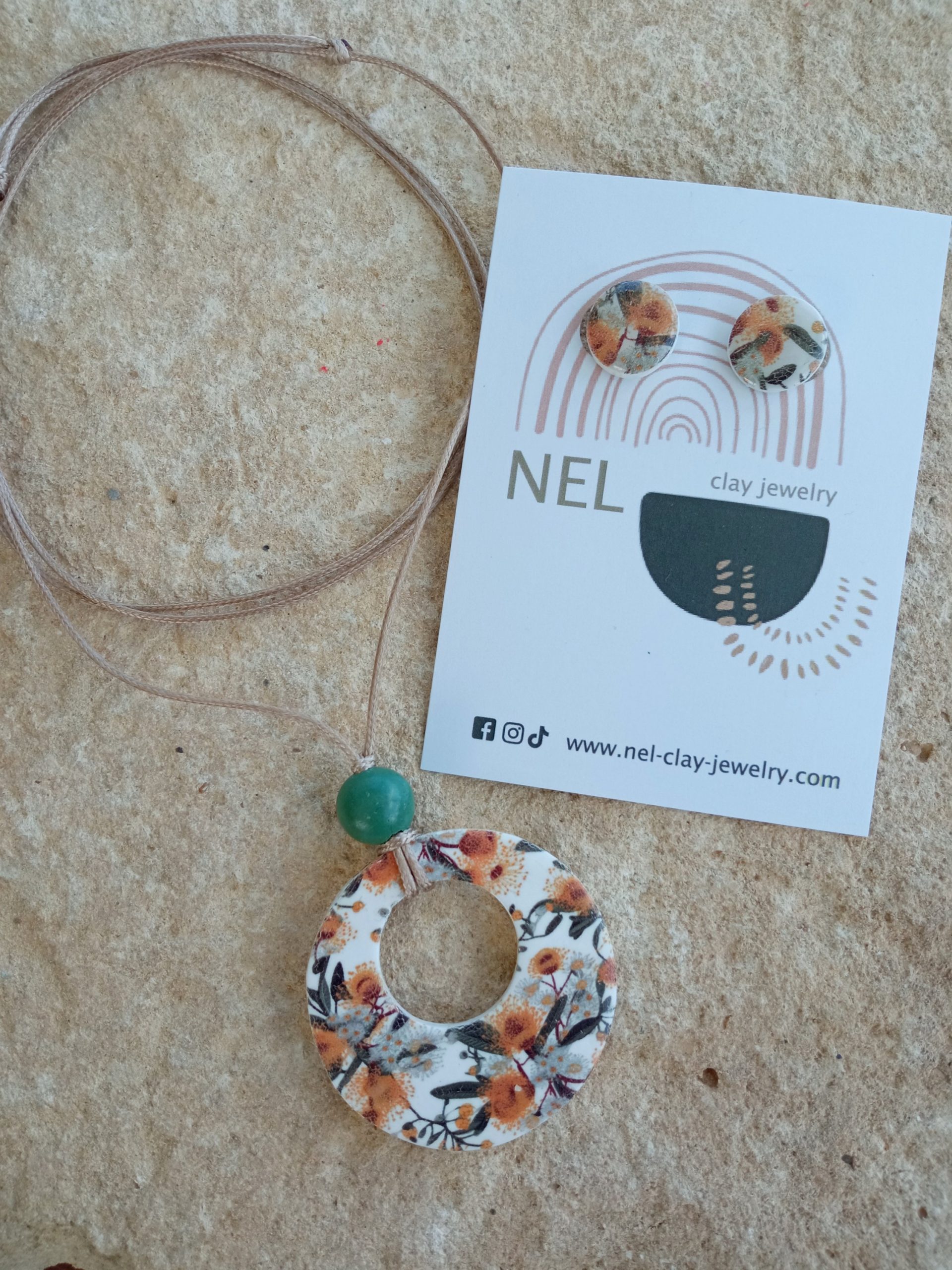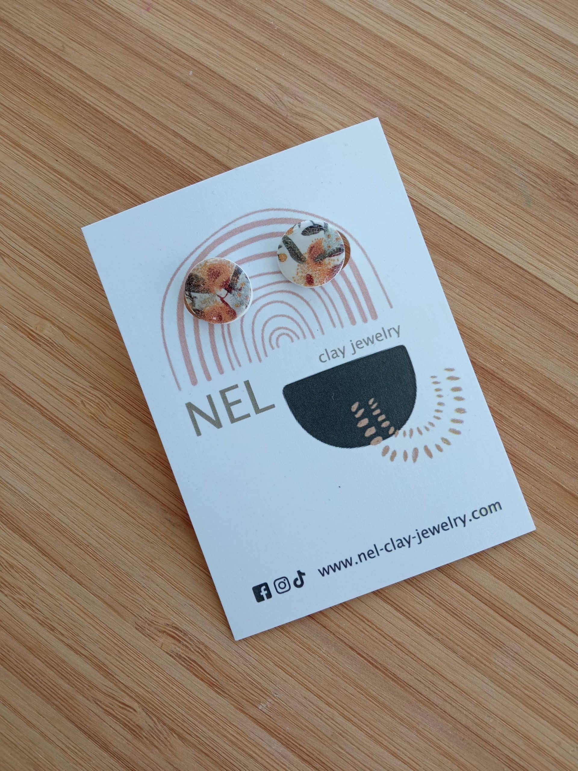 Materials: polymer clay, waxed polyester cord (adjustable length), stainless steel earring posts.
