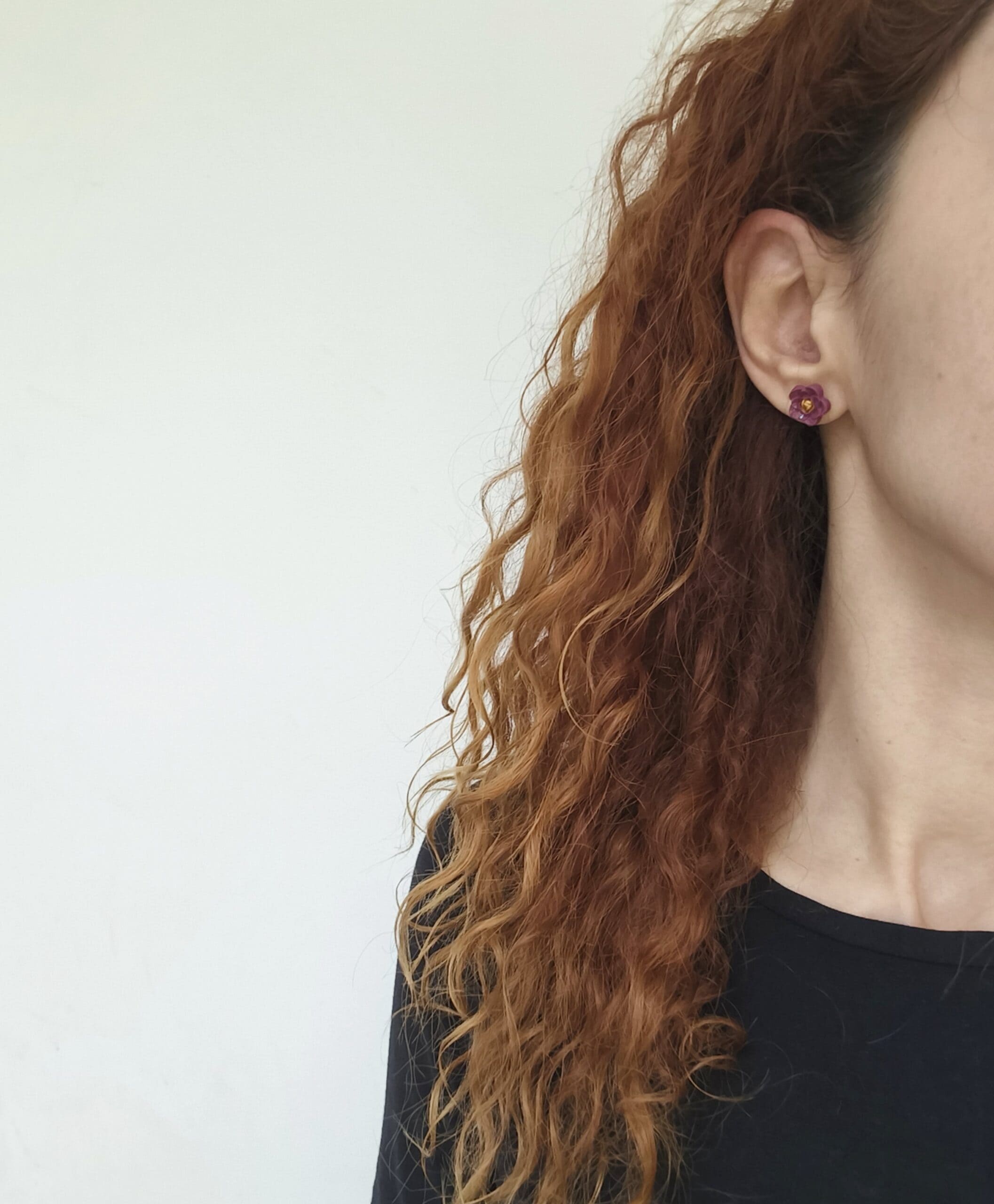 Unique handmade flower stud earrings in two shades of purple. Small, cute and easy to wear in various occasions. Ideal for adding a playful touch to your outfits.