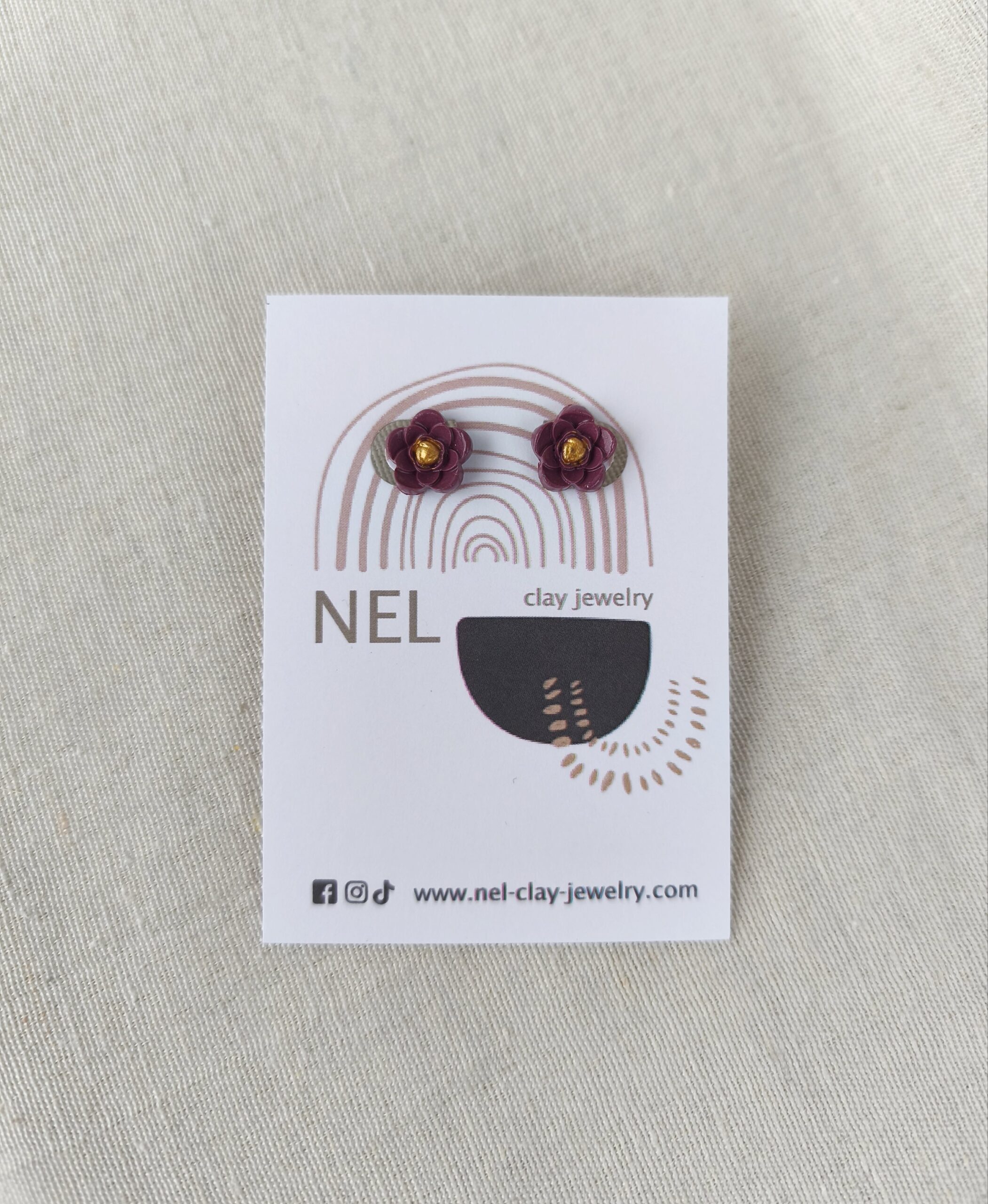 Materials: polymer clay, metallic paint, varnish, stainless steel earring posts.