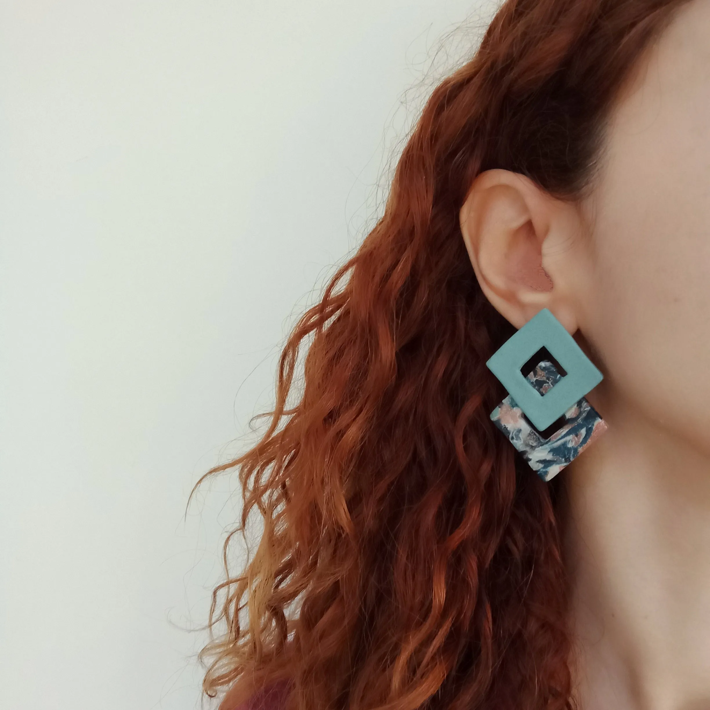 Light blue, marbled blue, pearl and rose rhombus statement studs