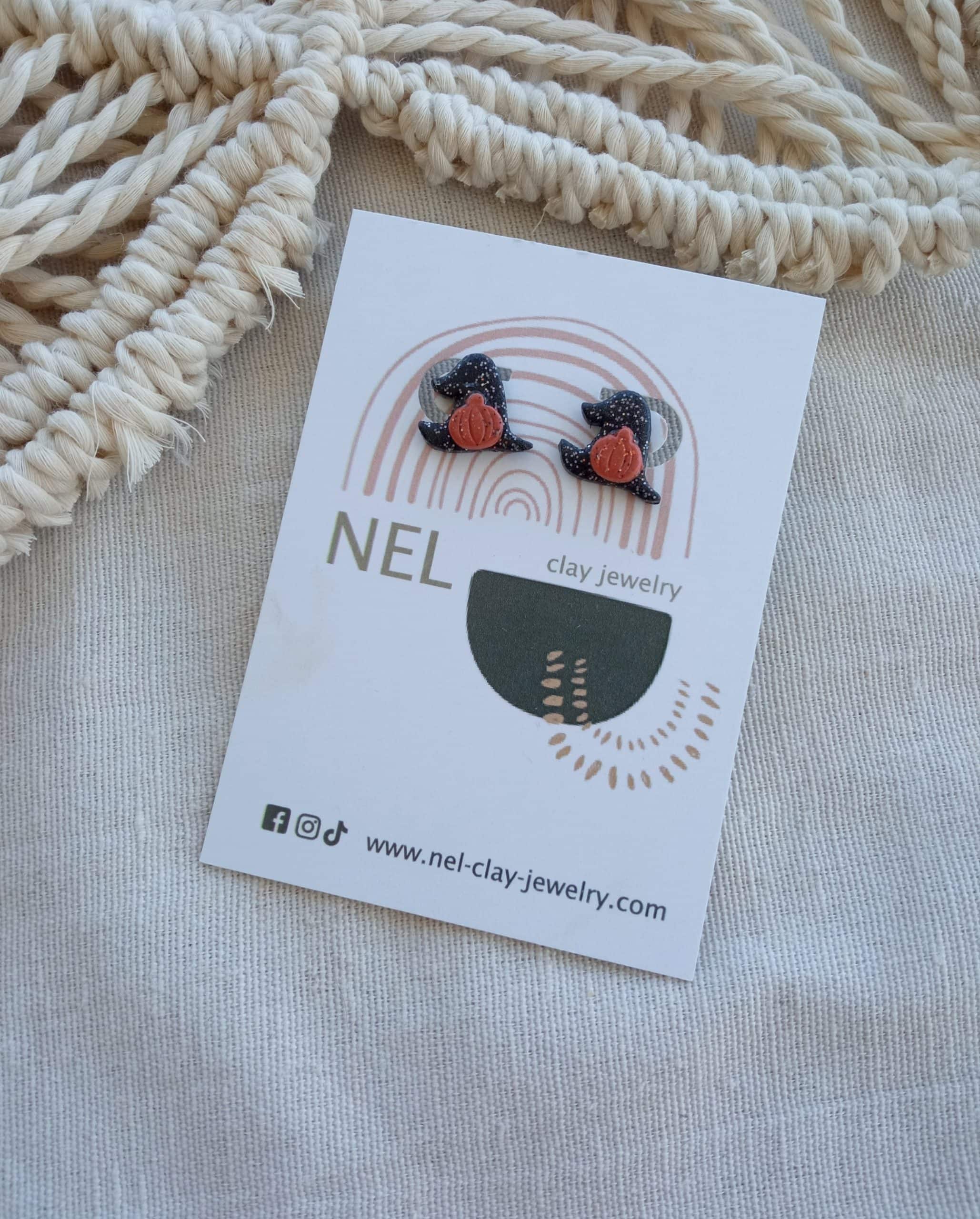 Materials: polymer clay, glitter, varnish, stainless steel earring posts.